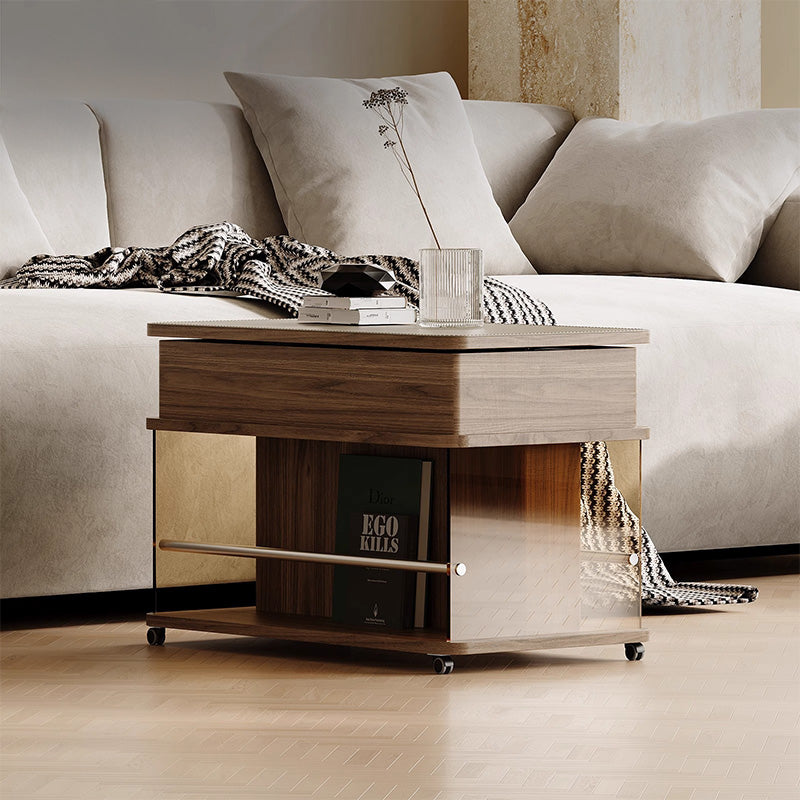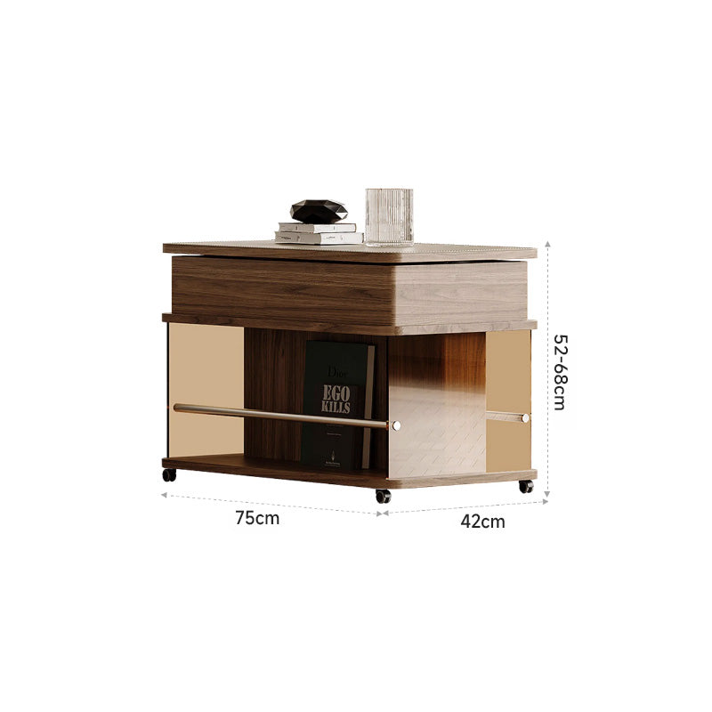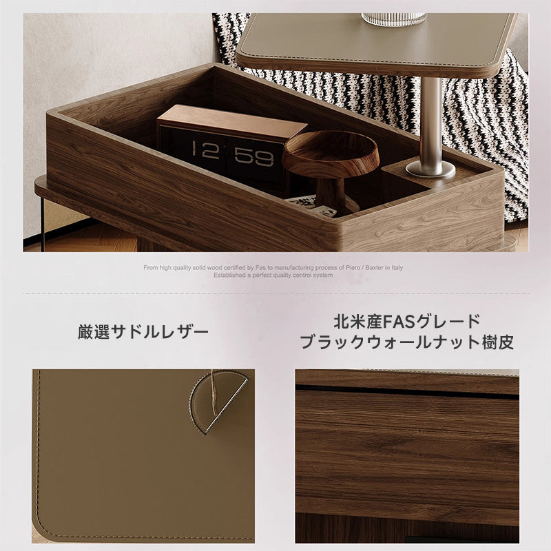 キャスター付き異素材モダンサイドテーブルは、異素材を組み合わせたデザインが特徴のモダンなサイドテーブルです。キャスター付きで移動が簡単にでき、部屋のどこにでも手軽に配置できます。サイズは75cm x 42cm x 52-68cmで、コンパクトながらも十分な収納スペースを提供。厳選されたサドルレザーや北米産ブラックウォールナット樹皮を使用し、高級感と耐久性を兼ね備えています。E1グレードのエコボードや高強度強化ガラス、ステンレスフレーム、アルミ合金キャスターを使用し、モダンで洗練されたデザインがどんなインテリアにもマッチします。リビングやベッドルームに最適で、日常生活をより豊かにします。