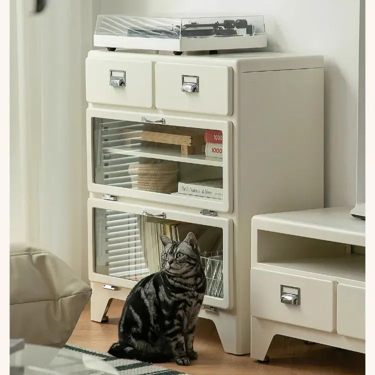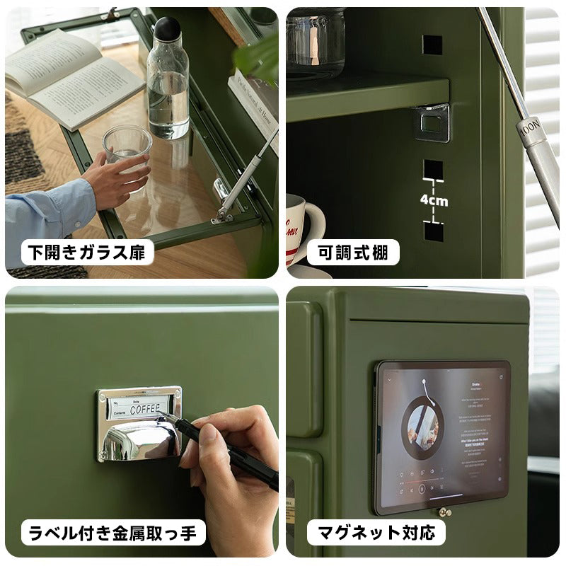 マグネット対応ガラスドアキャビネットは、シンプルモダンなデザインでリビングやダイニングに最適な収納家具です。幅77cm、奥行40cm、高さ90cmのコンパクトサイズで、スペースを有効活用。調節可能なガラス棚と2つの引き出しで収納力抜群。静音油圧ダンパーでスムーズな開閉、丸みを帯びたエッジで安全性も考慮。金属とガラスを使用した耐久性のある仕上げで、防水・耐熱性が高く清掃も簡単。マグネット対応で自由にスタイルをカスタマイズ可能。一人暮らしからファミリーまで幅広く対応し、組み立ても簡単です。
