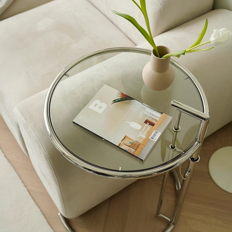 強化ガラストップ昇降サイドテーブル
