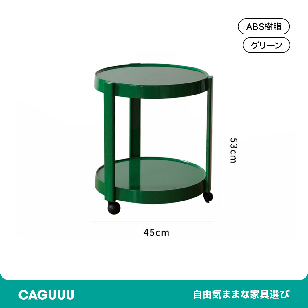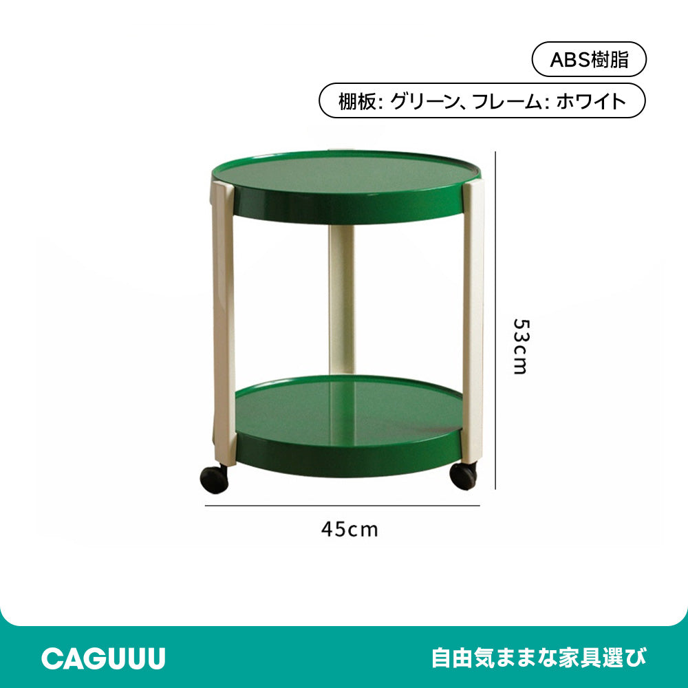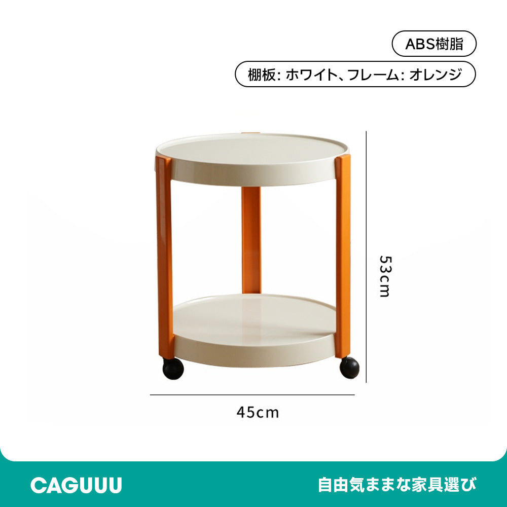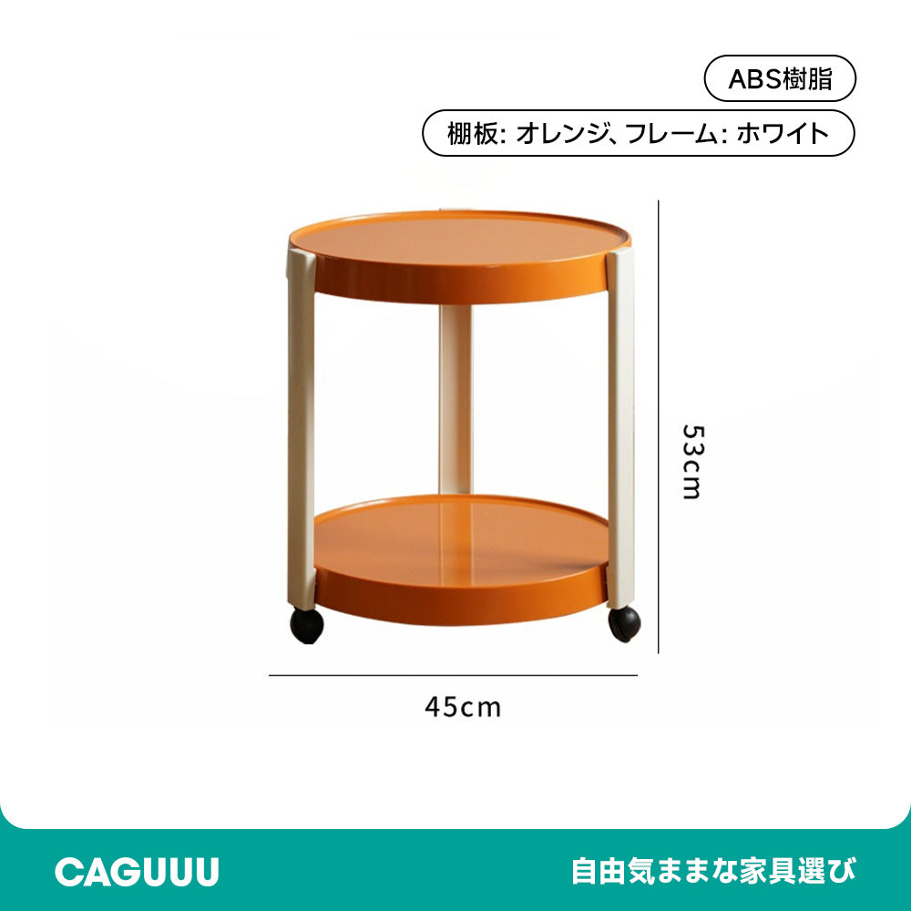キャスター付2段サイドテーブルは、シンプルモダンなデザインで、ベッドルームやリビング、寝室にぴったりフィットします。ABS樹脂製で高耐久性を持ち、環境にも優しい素材です。高さ53cm、直径45cmの2段構造で、収納スペースが豊富。360°回転キャスターにより自由自在に移動可能で、床を傷つけません。ホワイト、オレンジ、グリーンの3色展開でお部屋の雰囲気に合わせて選べます。一人暮らしにも最適な組立品で、日々の生活に便利さと温かみをもたらします。