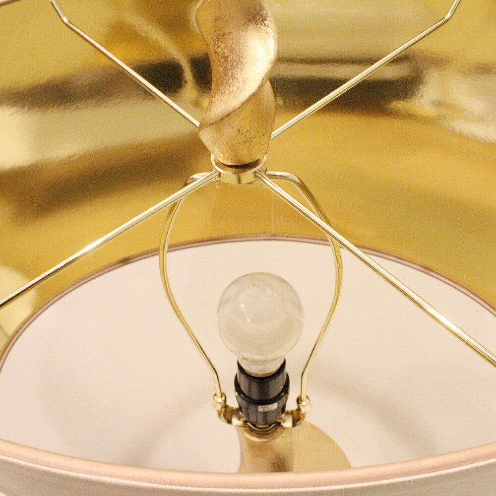 ラグジュアリーゴールド支柱テーブルランプは、エレガントで洗練されたデザインが特徴です。金色の支柱は独特のねじれた形状で視覚的なインパクトを与え、どんなインテリアにも豪華さを加えます。白いシェードが柔らかな光を提供し、部屋全体を温かく照らします。高品質の素材を使用し、耐久性と美しさを兼ね備えたこのランプは、リビングルームや寝室、オフィスなどに最適です。豪華でスタイリッシュな照明をお探しの方に最適な選択です。