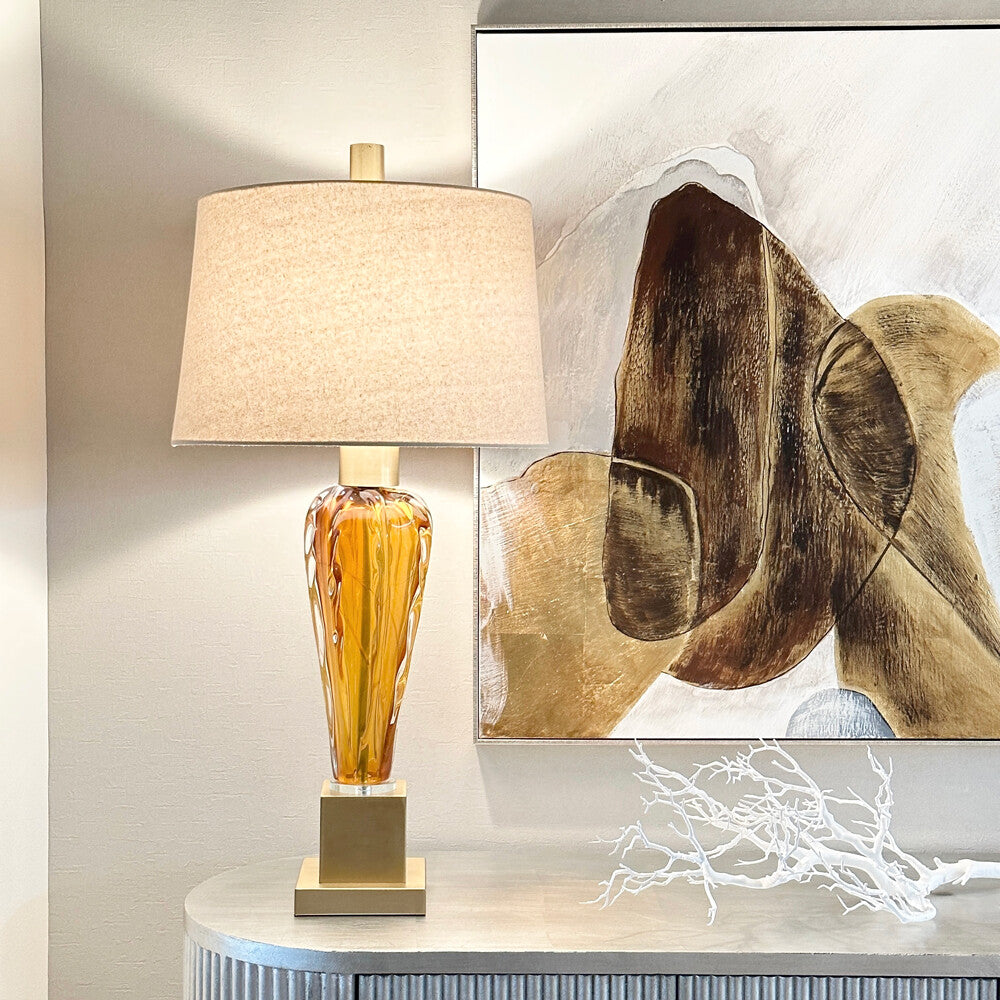 ラグジュアリーホワイトシェードオレンジガラステーブルランプ