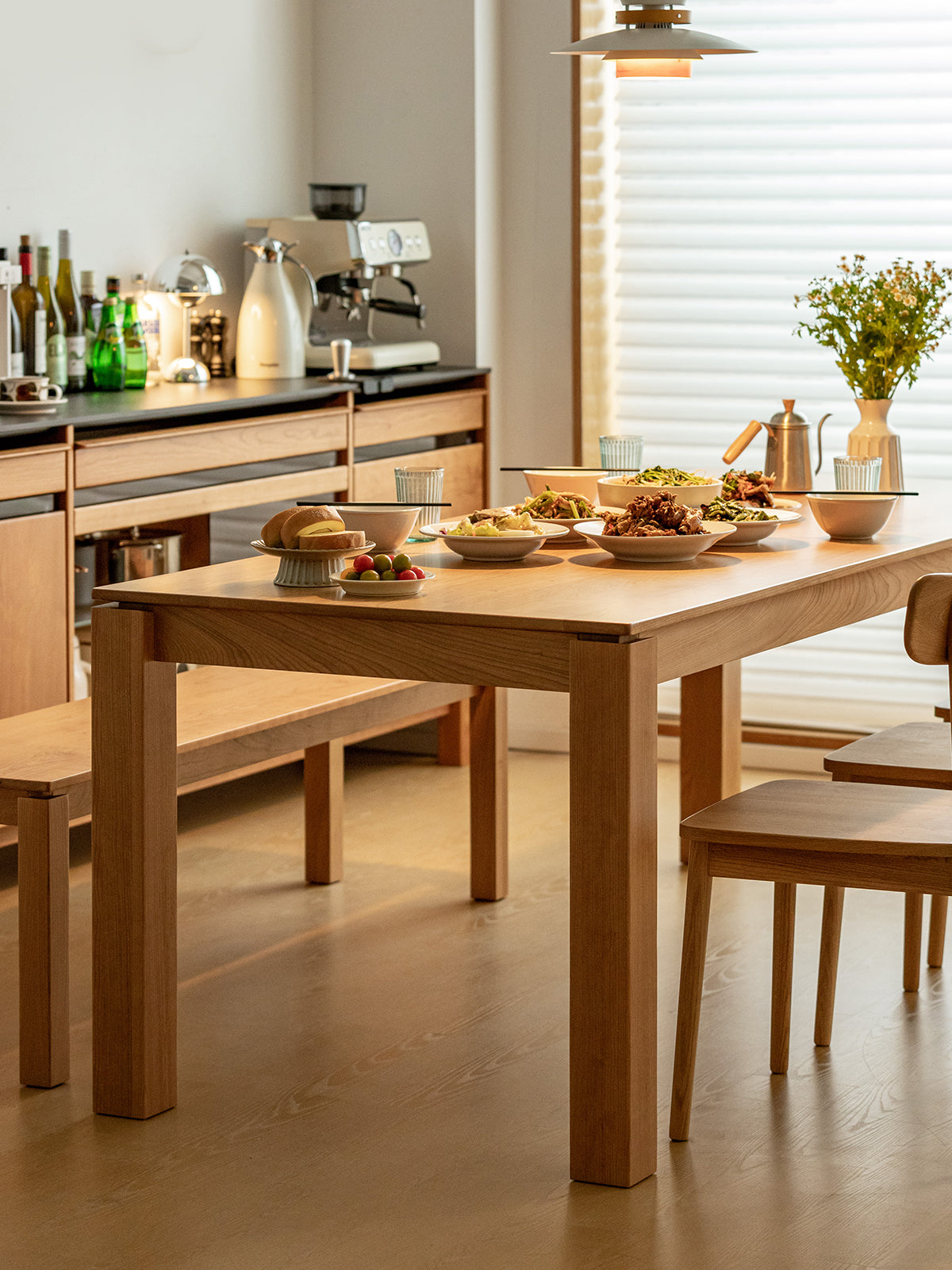 チェリー材 ワイドダイニングテーブルは、北米輸入のFAS級チェリー材を使用した高品質なダイニングテーブルです。自然な質感と上品な色合いが特徴で、1.4mから2.1mまでの4つのサイズから選べます。頑丈な構造とシンプルなデザインで、どんなインテリアにもマッチし、食事や勉強、作業スペースとしても活用可能です。環境に優しいコーティングが施され、安心してお使いいただけます。家族や友人との団らんの場をより豊かにするこのテーブルは、日常を彩る一品です。