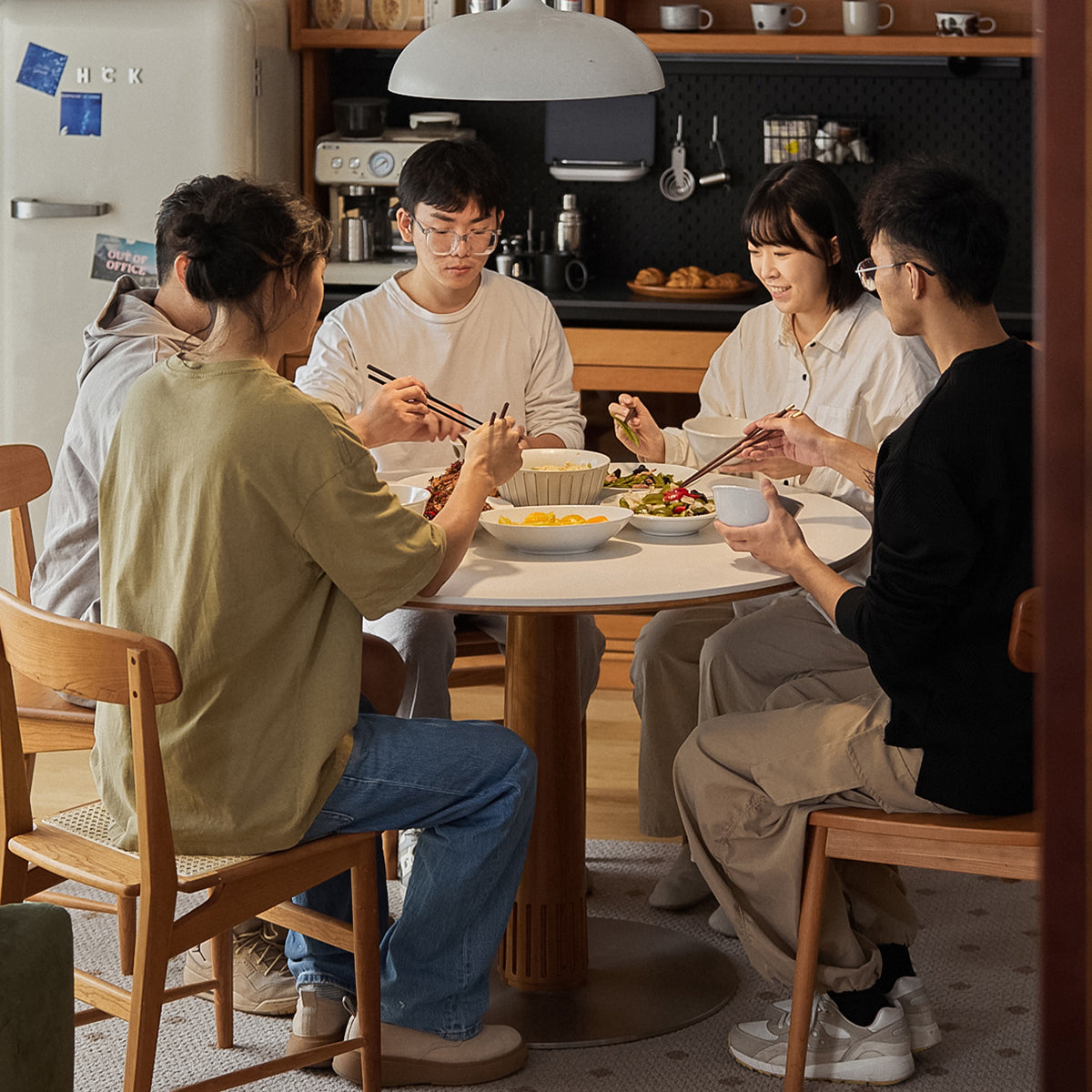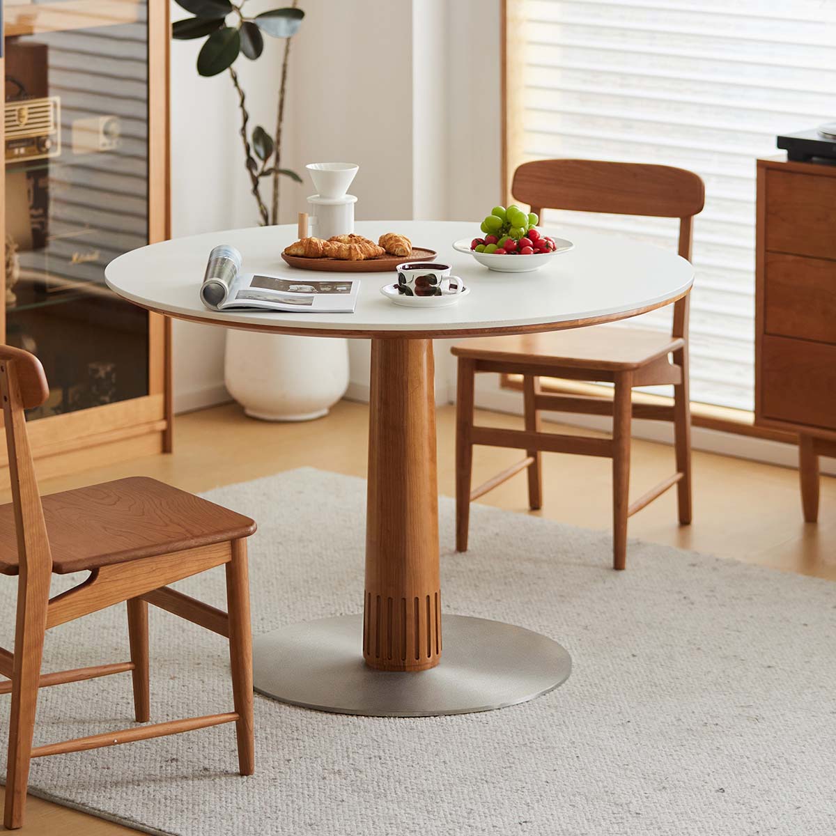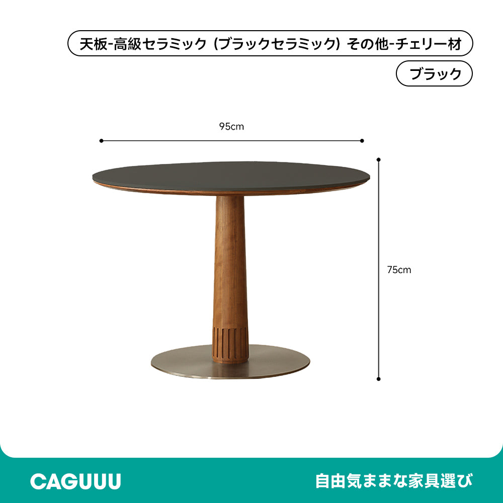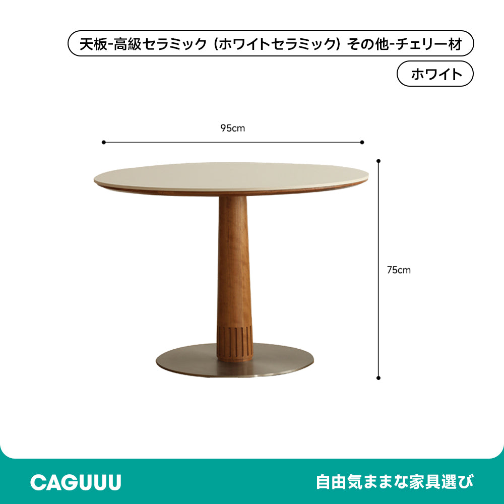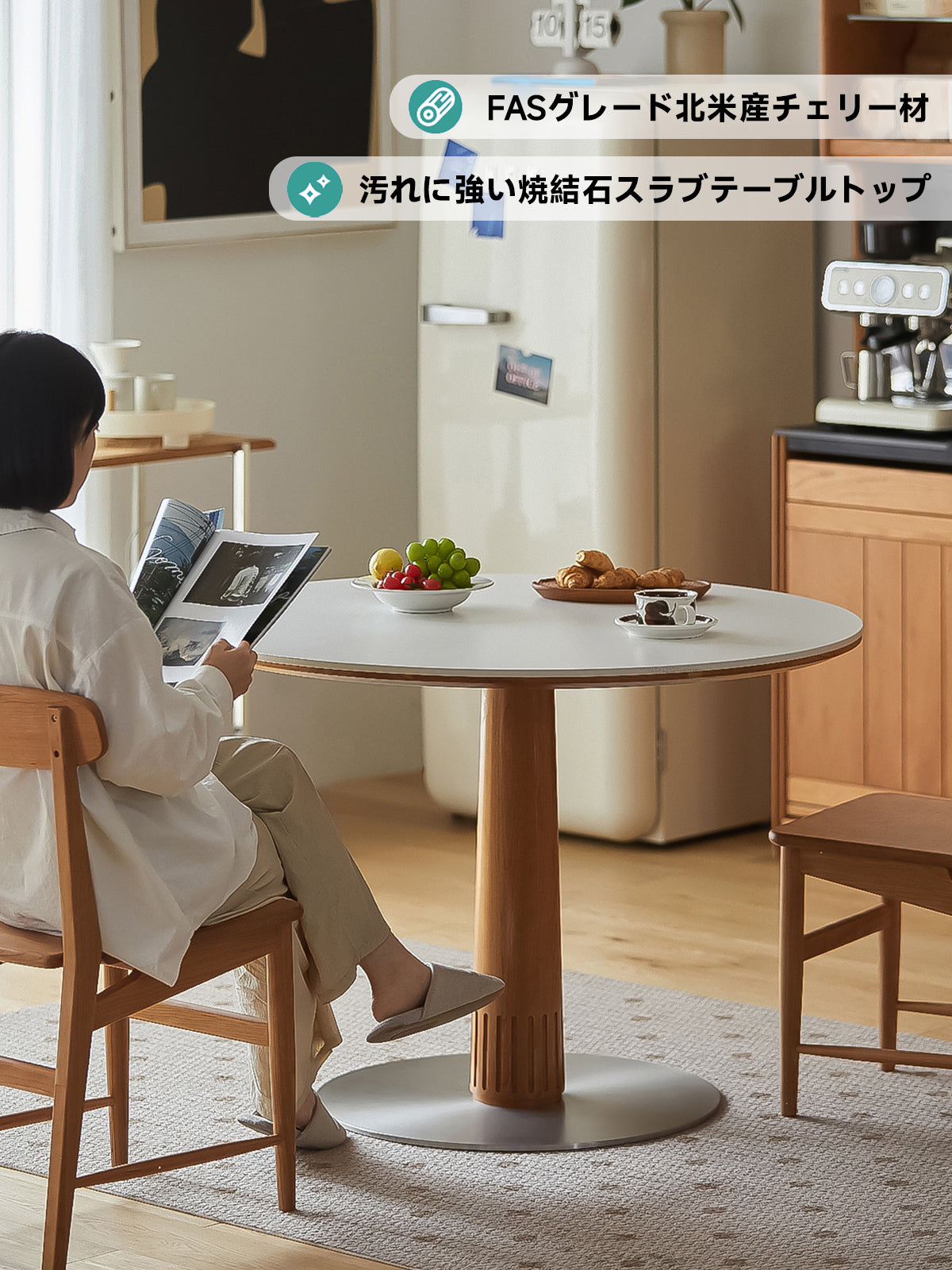 チェリー材 高級セラミックコンパクトラウンドダイニングテーブル