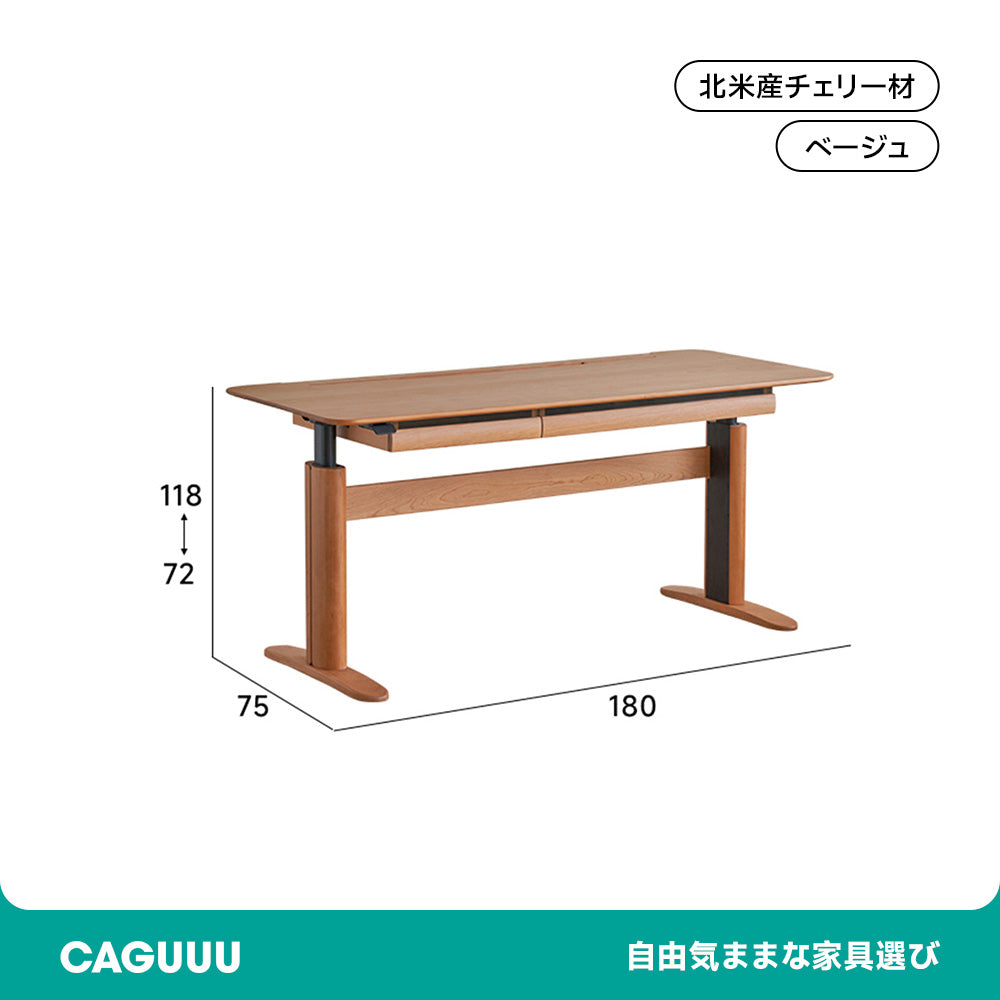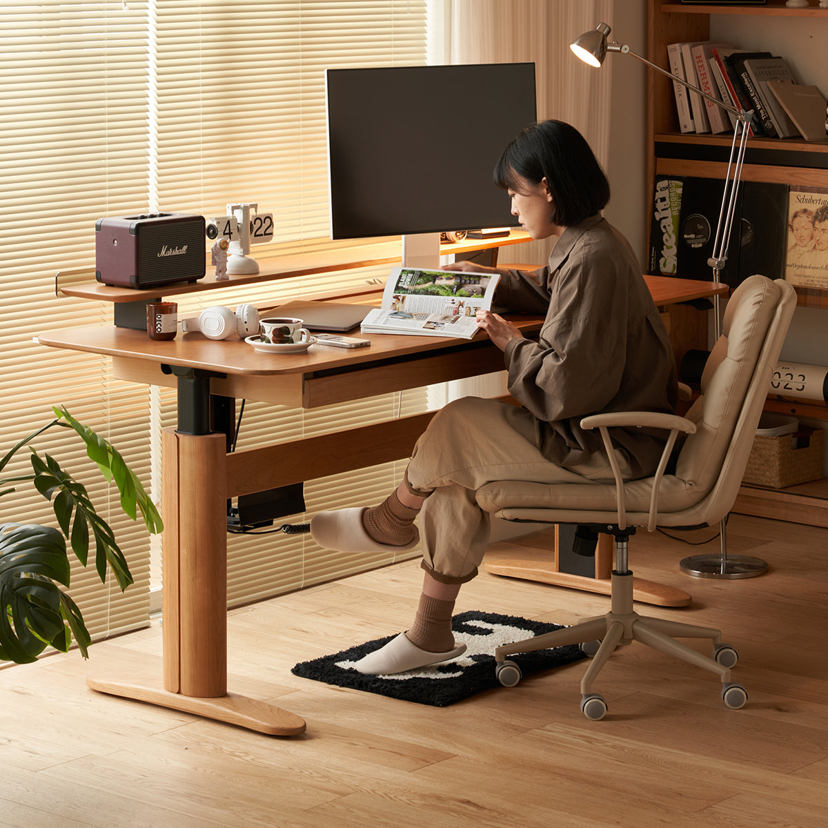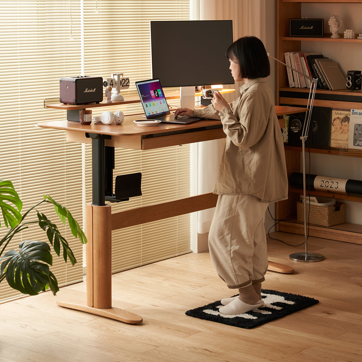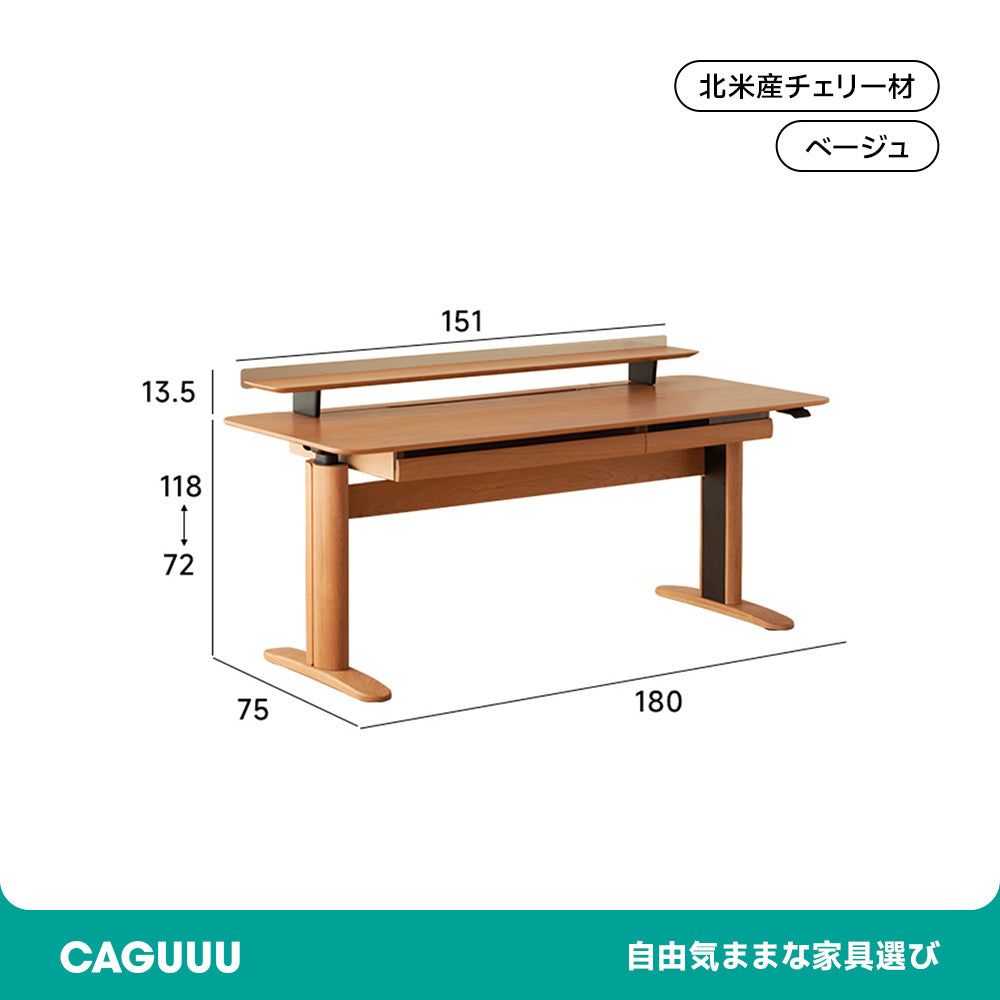 チェリー材 電動昇降式ウッドワークデスクは、北米産の高品質なチェリー材を使用し、優れた耐久性と美しい木目を誇ります。デュアルモーターによる静かでスムーズな高さ調整機能を備え、作業効率を向上させます。高さ72cmから120cmまで調整可能で、座ったままでも立ったままでも快適に使用できます。最大160kgの耐荷重を持ち、頑丈な構造で安心して使用可能。収納力抜群のデスク下ケーブル管理システムと引き出し付きで、整理整頓も簡単です。埋め込み式ライトストリップで作業空間に温かみを演出し、120cm、150cm、180cmの3サイズから選べます。健康的な生活習慣をサポートするこのデスクは、在宅勤務や趣味の作業スペースに最適です。