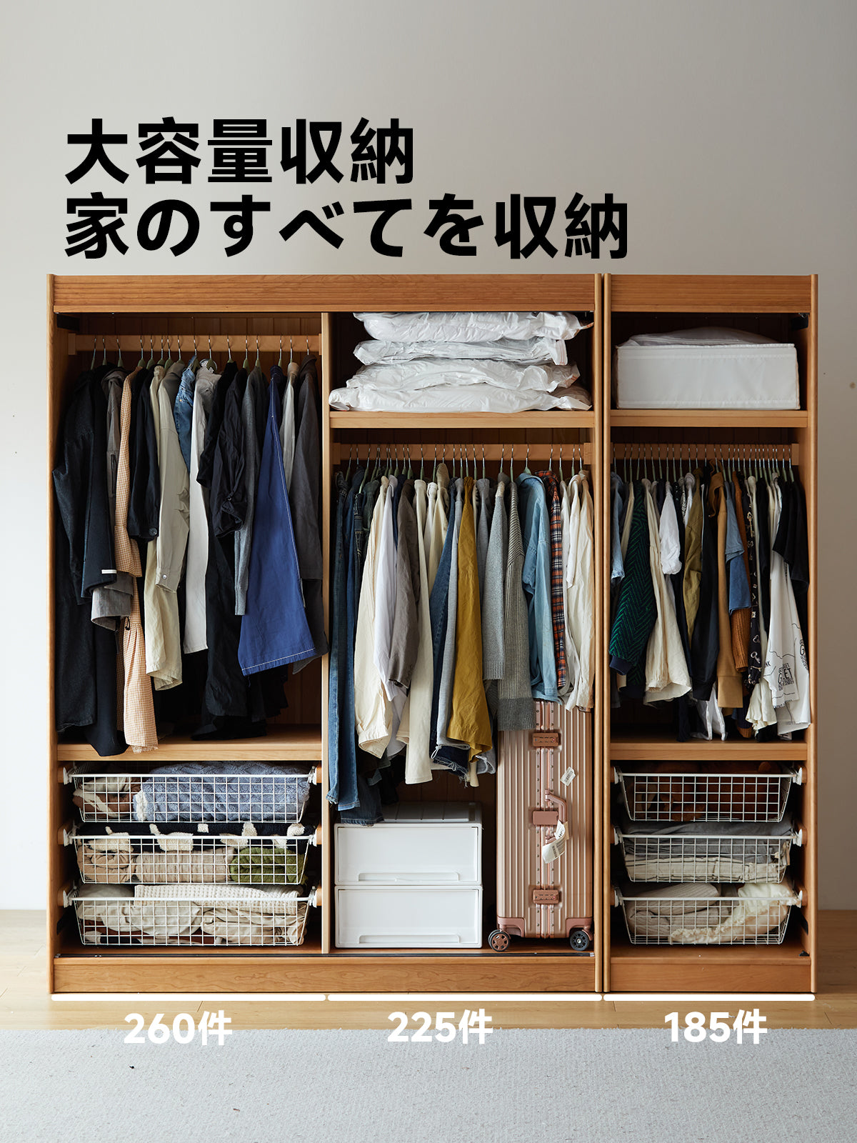 チェリー材 大容量クローゼットは、FAS級アメリカ産チェリーウッドを使用し、耐久性と美しさを兼ね備えた環境に優しい製品です。大容量収納とスマートケア機能を備え、衣類を長時間保護します。引き戸デザインとモジュール式の区分により、コンパクトな寝室でも使用可能。厚さ21mmのハンガーバーで耐荷重性も抜群。静音設計で夜間でも安心して使用できる、あらゆる家庭に適した収納ソリューションです。