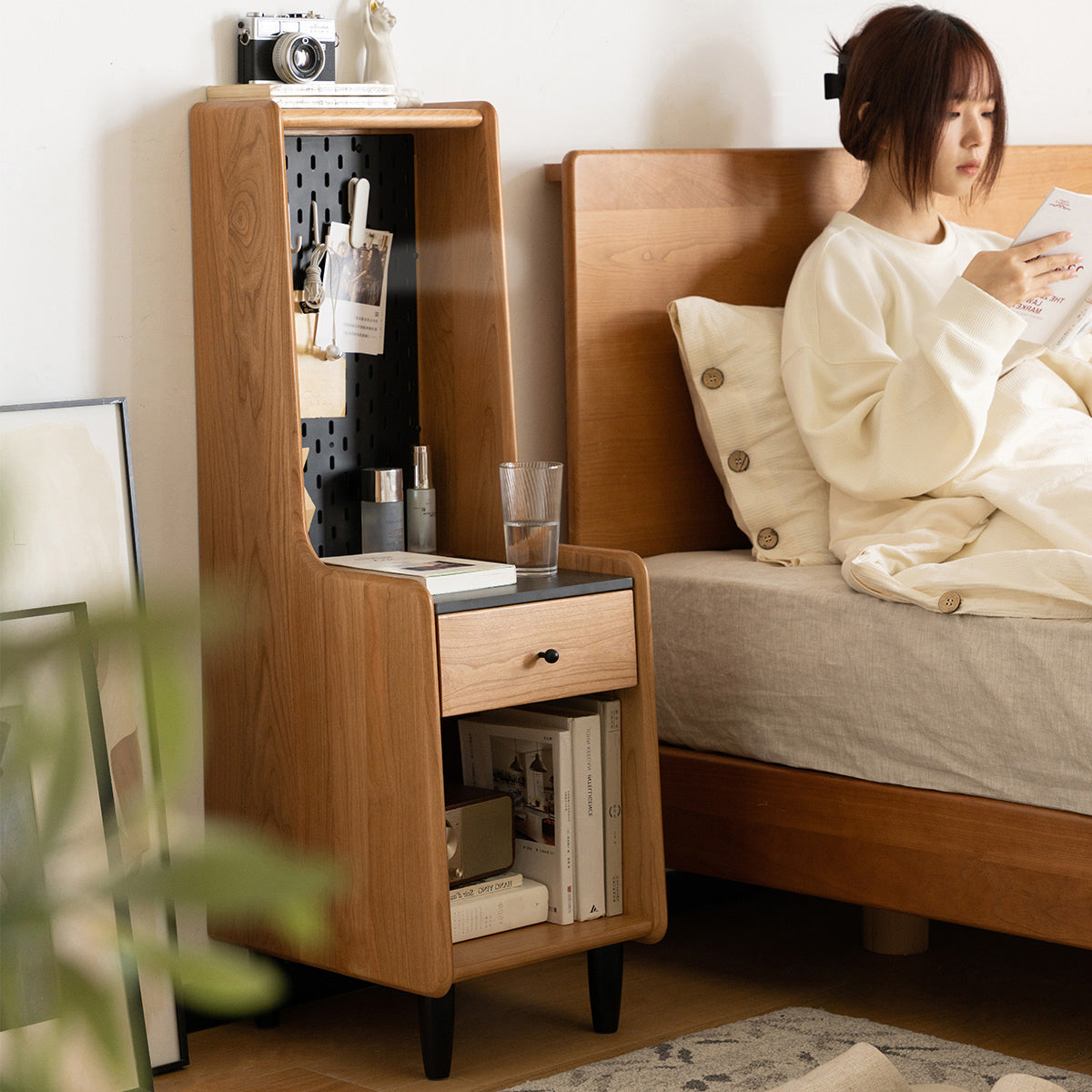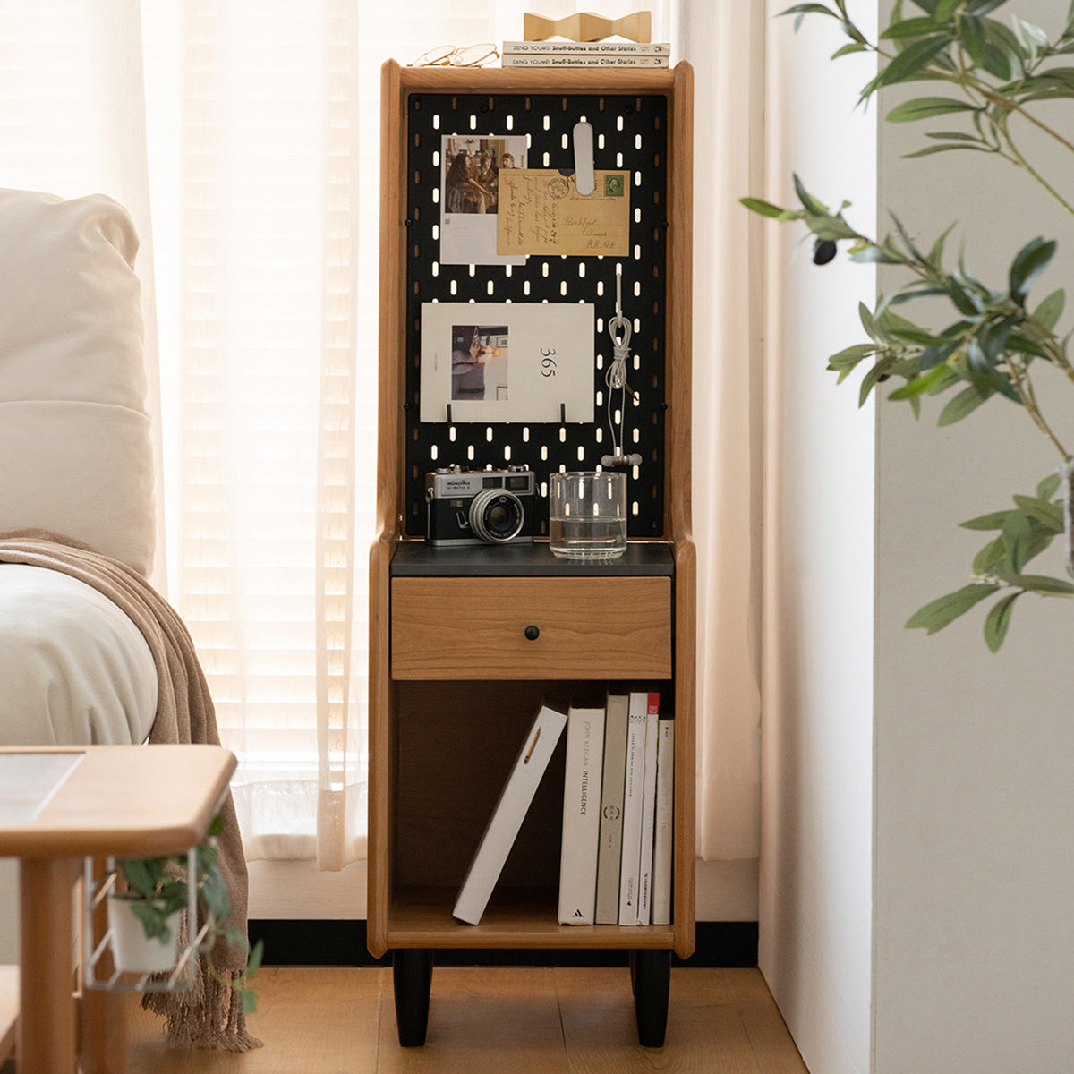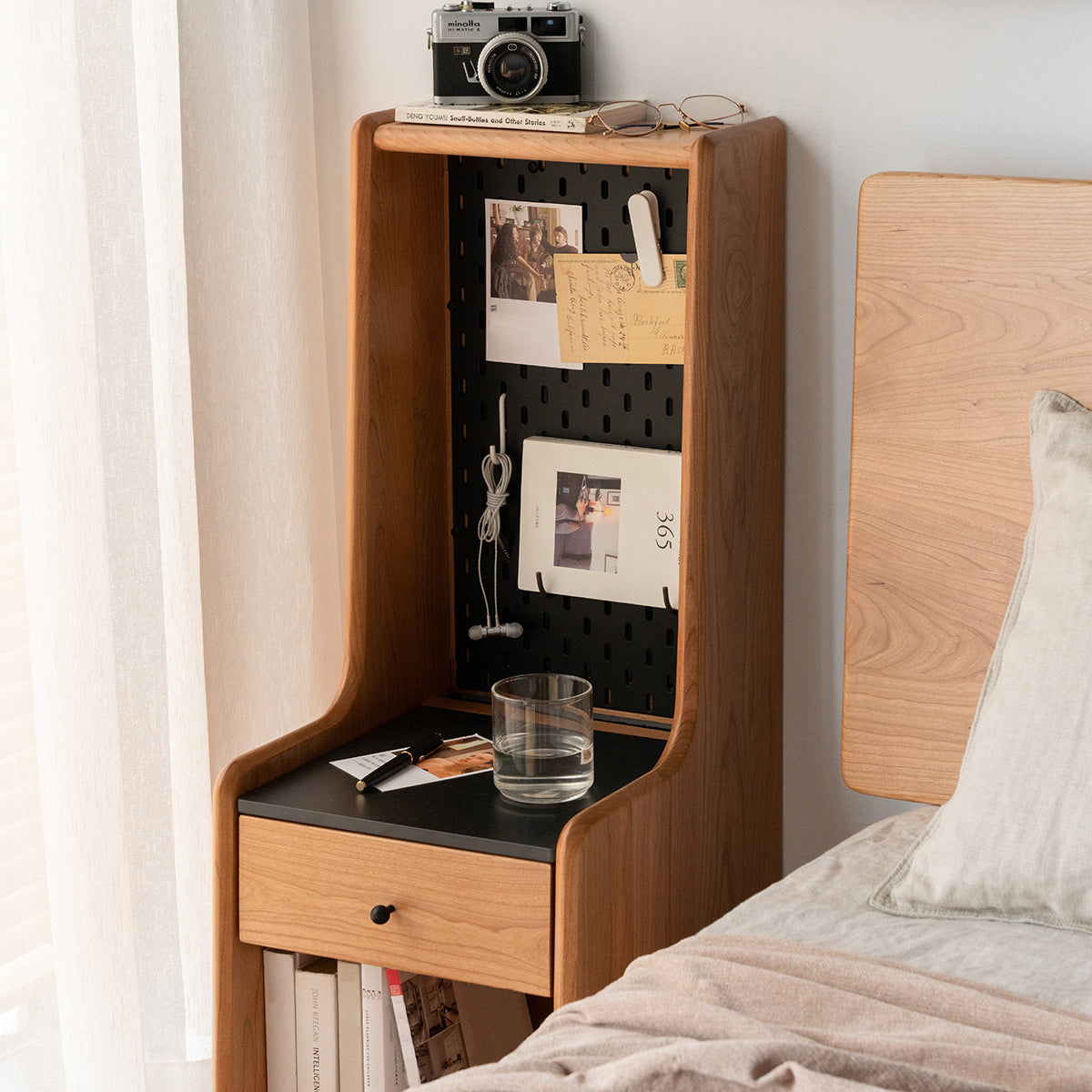 チェリー材 有孔ボード付きチェリーウッドナイトテーブル