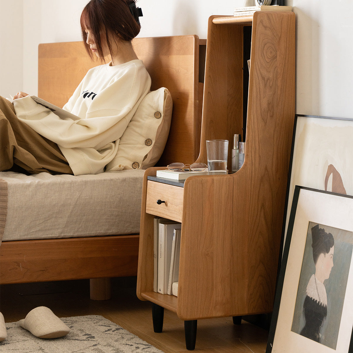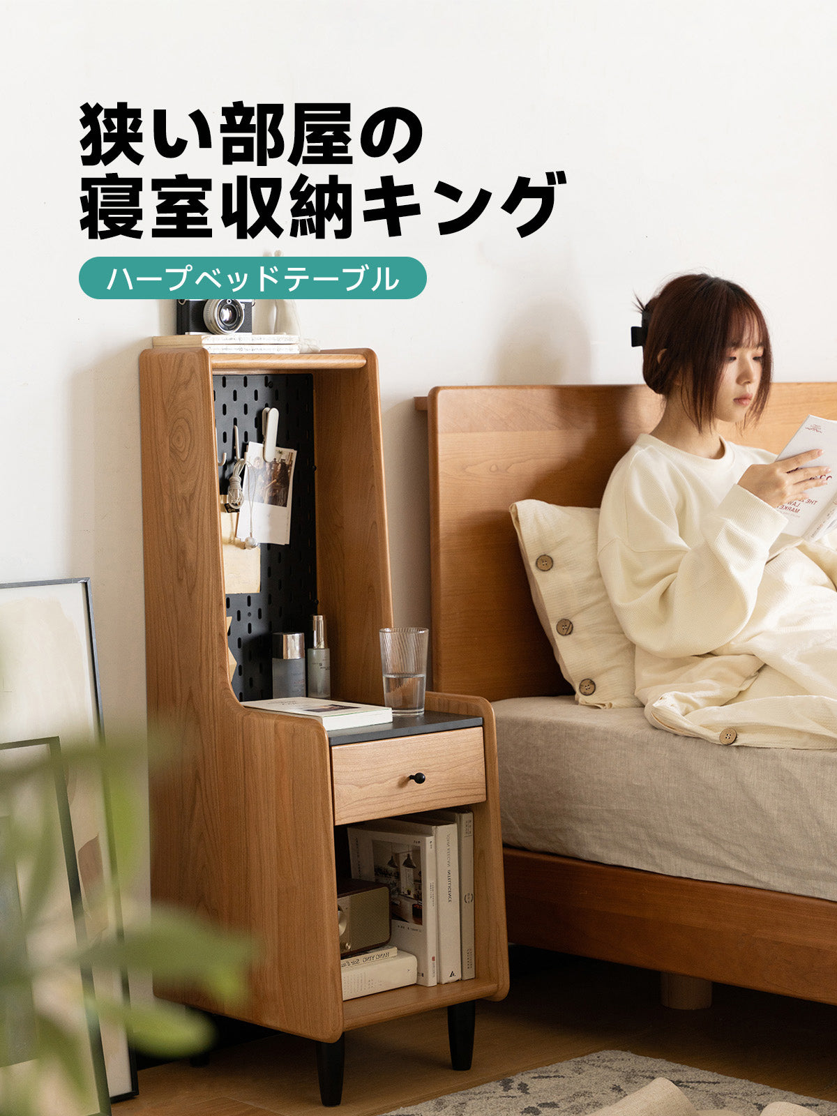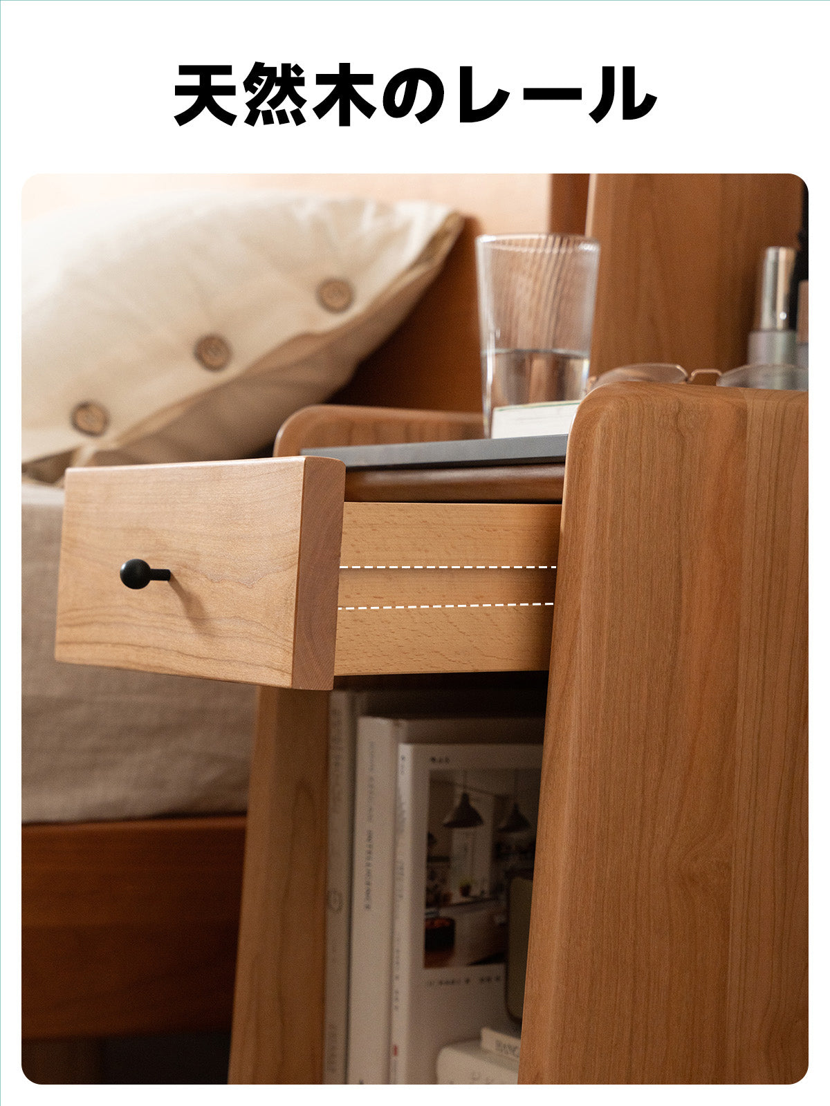 チェリー材 有孔ボード付きチェリーウッドナイトテーブル