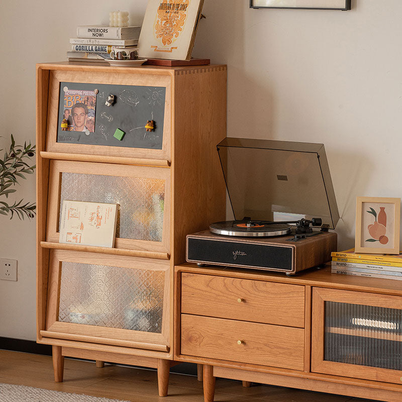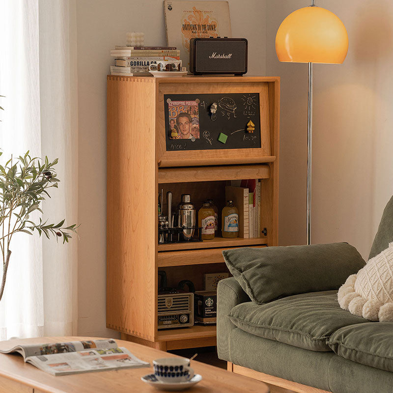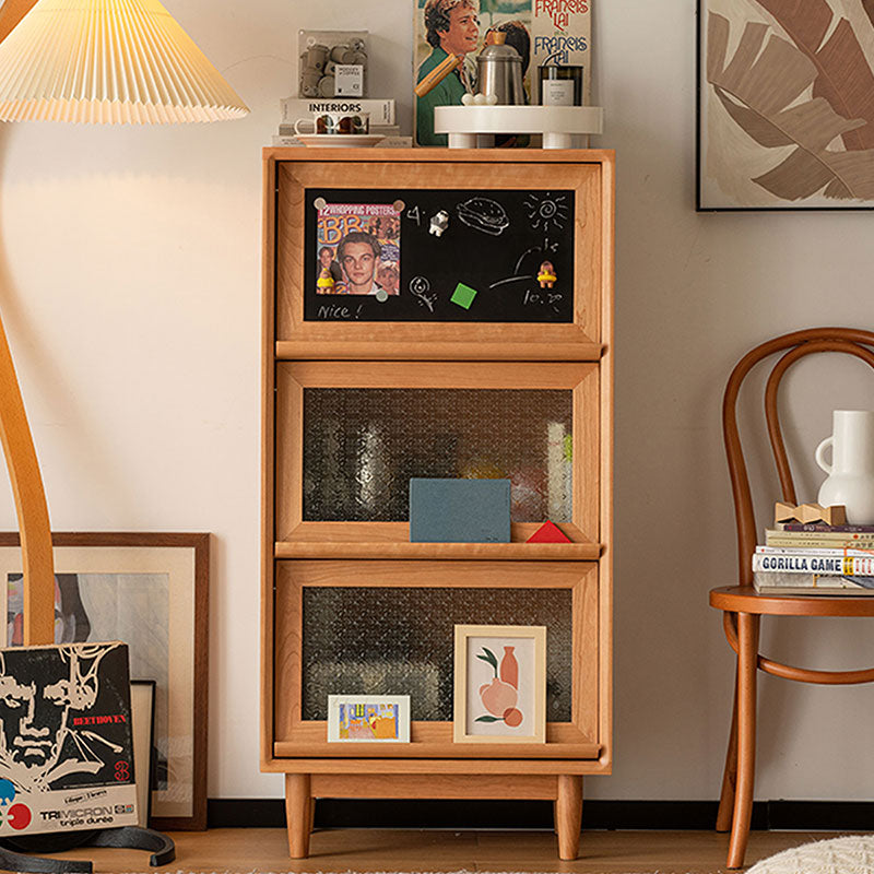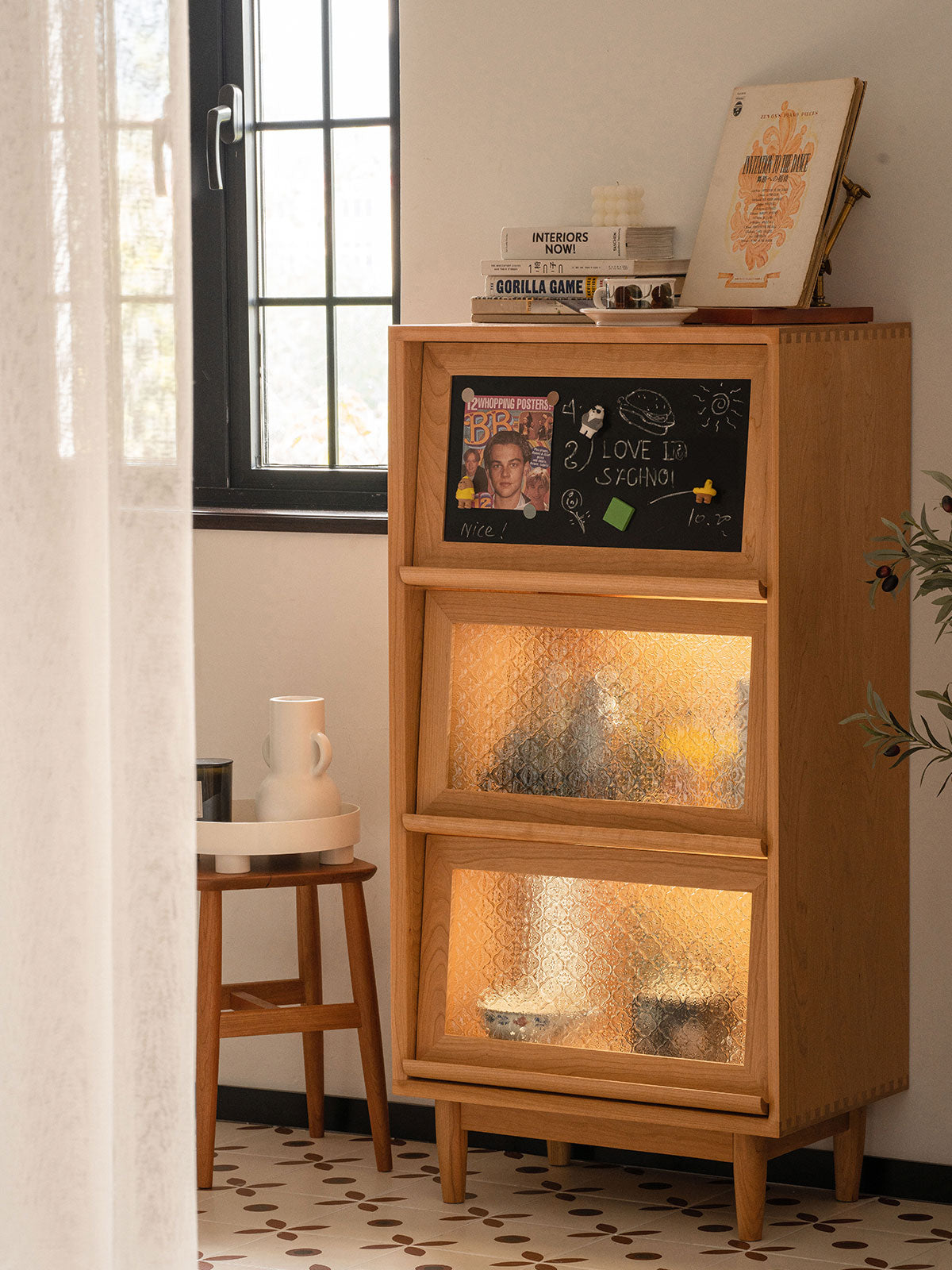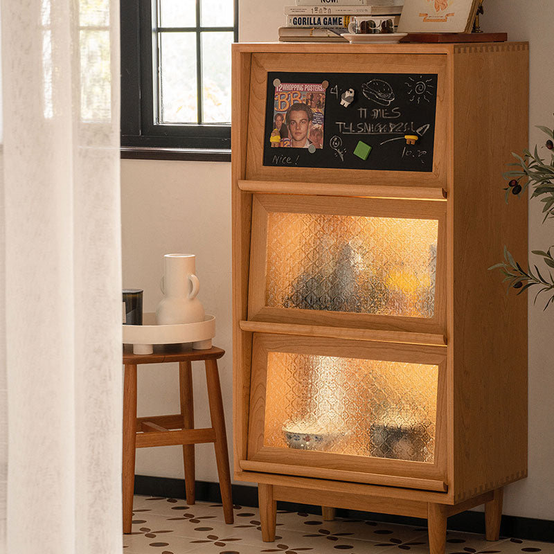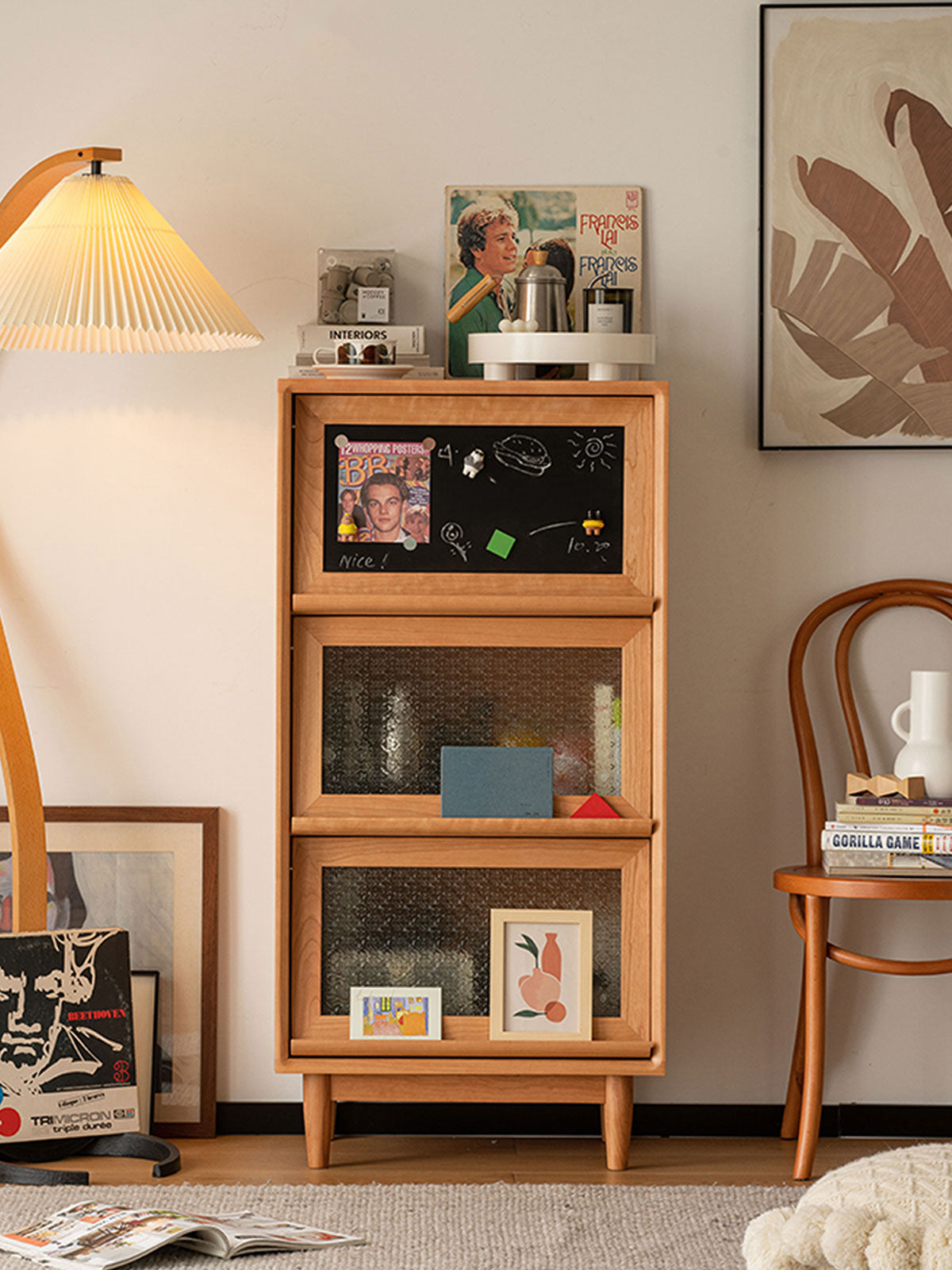 チェリー材 ブラックボード付きベゴニアガラス扉キャビネット