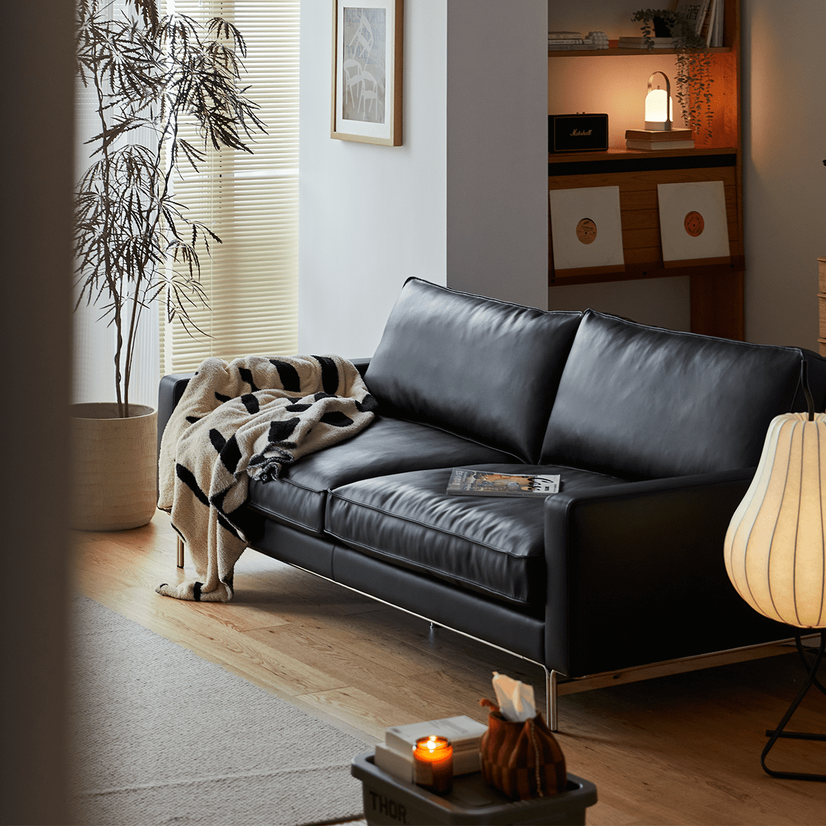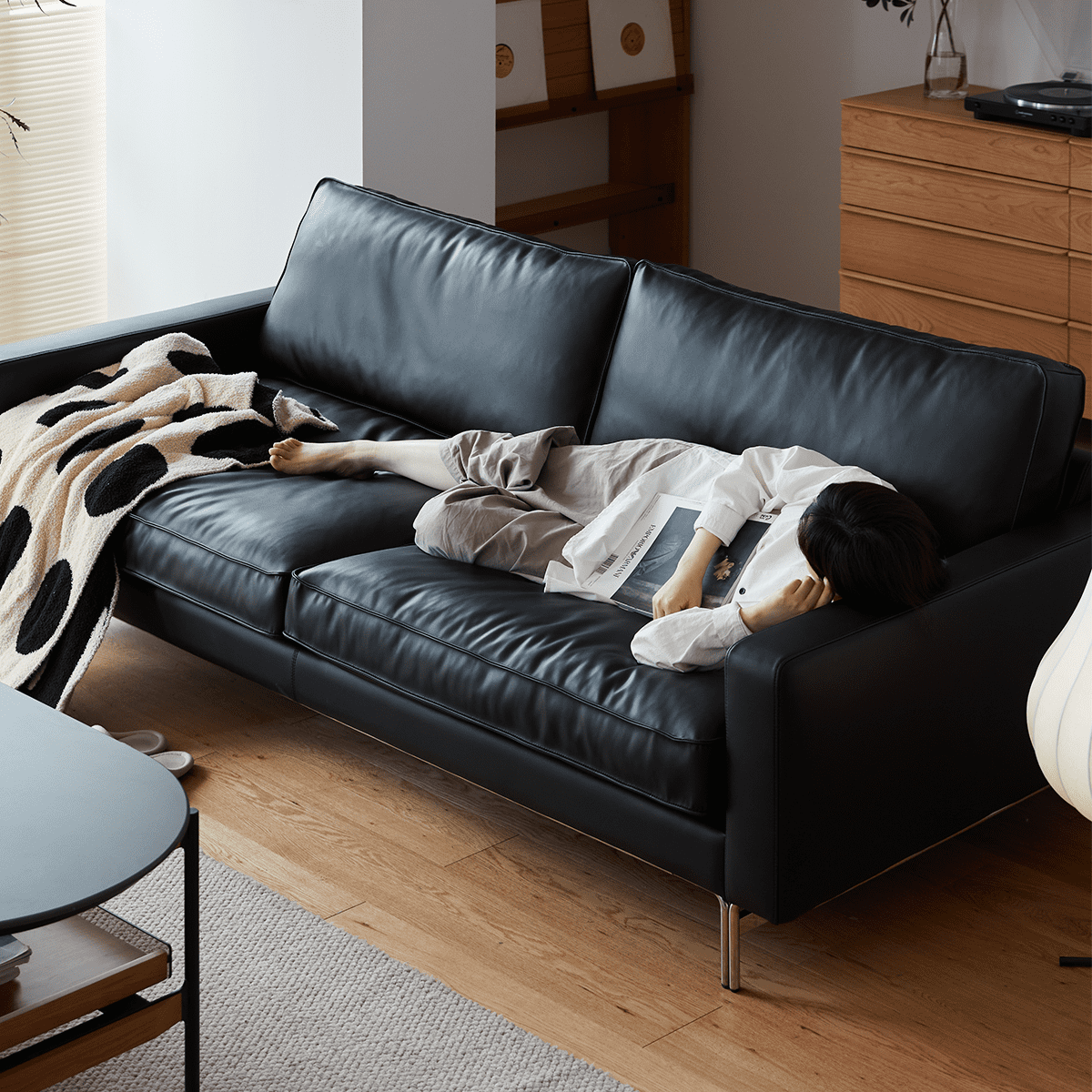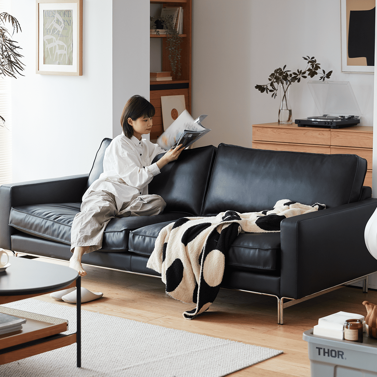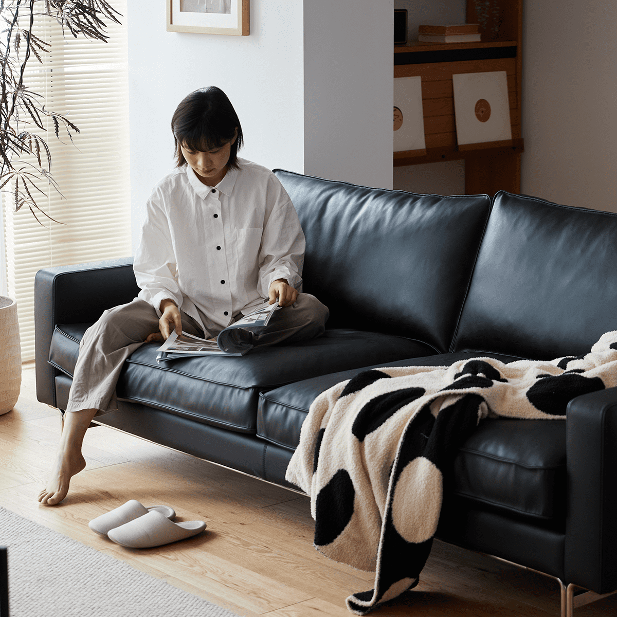 ヴィンテージ風本革ブラッククッションソファは、上質な輸入本革と洗練されたデザインを特徴とし、クラシックなスタイルと現代のインテリアに完璧に調和します。高品質な素材と快適な座り心地を提供し、ニュージーランド産の松材フレームとステンレスフレーム脚で安定性を確保。防カビ効果のある裏地で清潔を保ち、1人掛けから3.5人掛けまでのサイズ展開で、あらゆるスペースに最適です。どの角度から見ても美しいデザインで、日常の手入れも簡単です。
