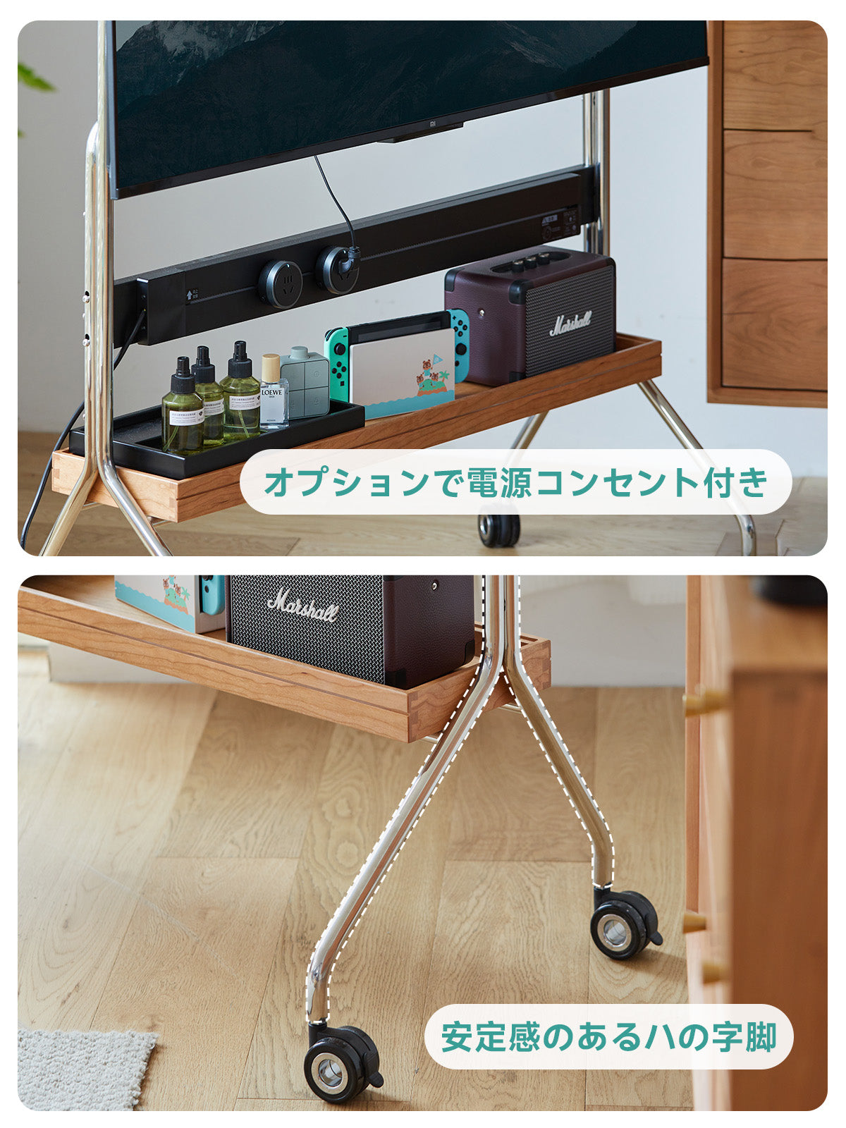 チェリー材 可動式テレビスタンド