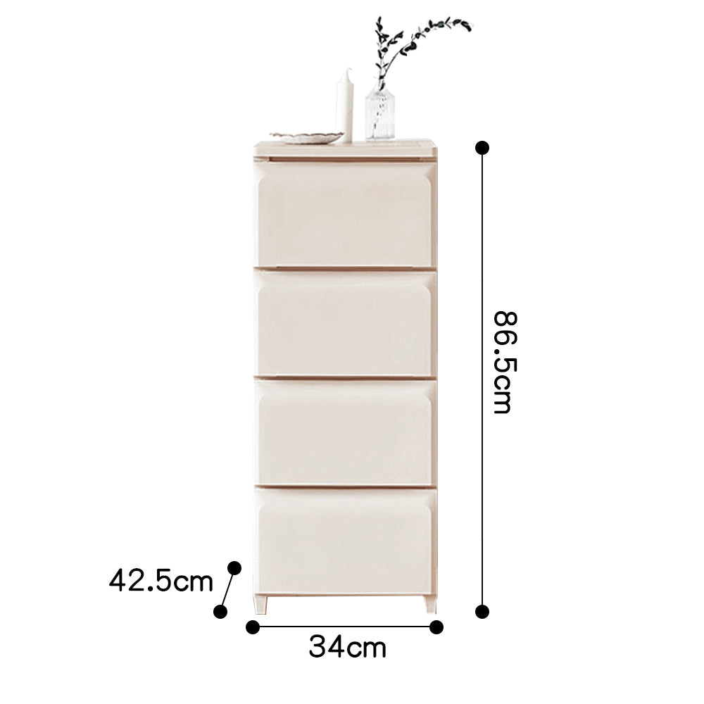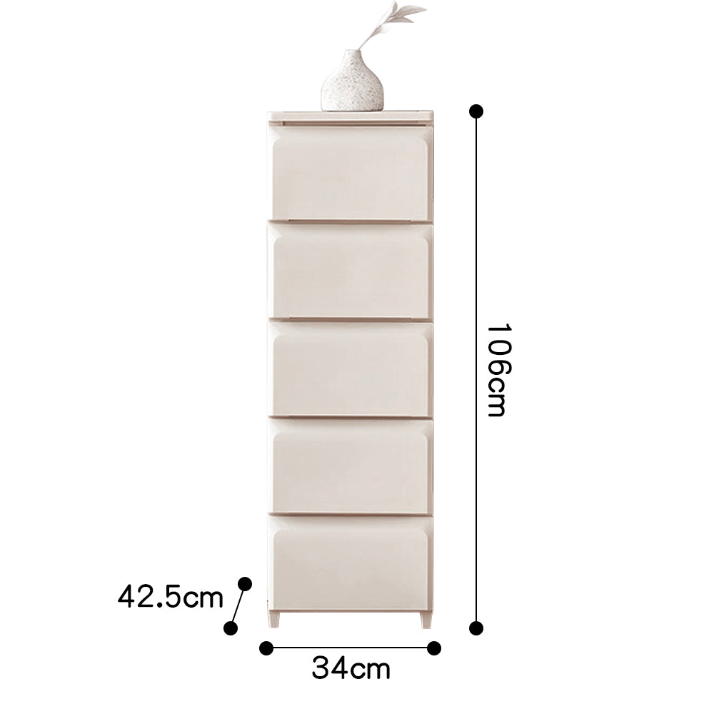 マルチ引き出しキャビネットは、シンプルでスタイリッシュなデザインが特徴の収納ソリューションです。多様なサイズとカラーオプションがあり、どんなインテリアにもマッチします。幅34cmと55cmの2つの幅、3段から5段のバリエーション、高さ66.5cm、86.5cm、106cmから選べるため、リビングや寝室、子供部屋など様々な場所で活躍します。プラスチック製で軽量かつ耐久性があり、組み立ても簡単です。おしゃれで実用的な収納をお探しの方に最適です。