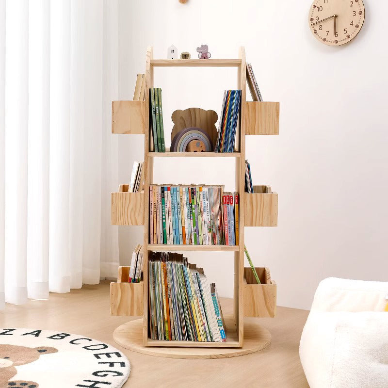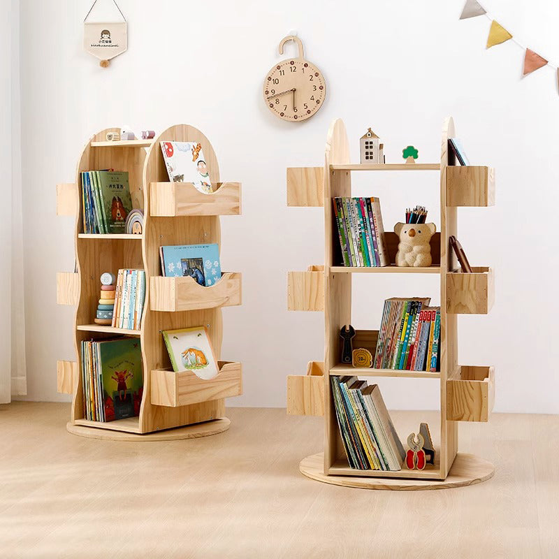天然木360度回転式本棚
