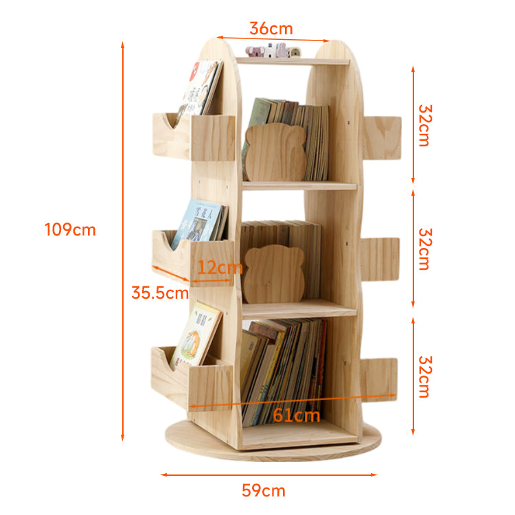 天然木360度回転式本棚は、ニュージーランド産のパイン材を使用し、環境に優しい無塗装・無臭の仕上げが特徴です。360度回転機能により、どの角度からでも簡単に本を取り出せ、静かでスムーズな動きが魅力。多用途収納で絵本や文房具、ディスプレイ用のおもちゃなどを整理整頓可能。安全設計で角が丸く加工されており、子供が触っても安心。クマ形の仕切り板がかわいいデザインで、子供部屋にぴったり。高さ110cm、幅59cm、奥行き36cmのコンパクトサイズで、DIYで簡単に組み立てられます。