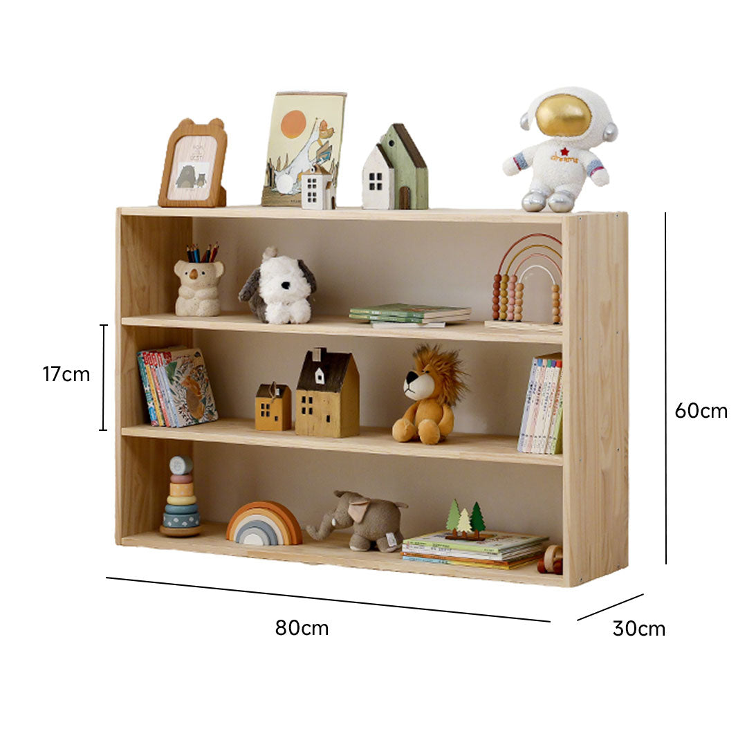 オープンキャビネットは、子供部屋に最適な収納家具です。ニュージーランド産のパイン材を使用し、自然な美しさと耐久性を兼ね備えています。ナチュラルブラウンの色合いがどんなインテリアにもマッチし、温かみのある雰囲気を演出します。2段または3段のオプションがあり、ステップタイプも選べます。角が丸く加工されており、子供が安全に使用できます。天然素材を使用し、健康に配慮した設計です。広い棚スペースで、絵本やおもちゃをたっぷり収納できます。子供の成長と共に長く使えるアイテムで、部屋をすっきりと整理整頓します。