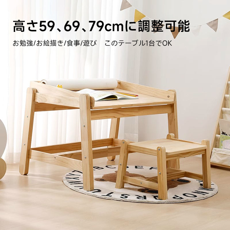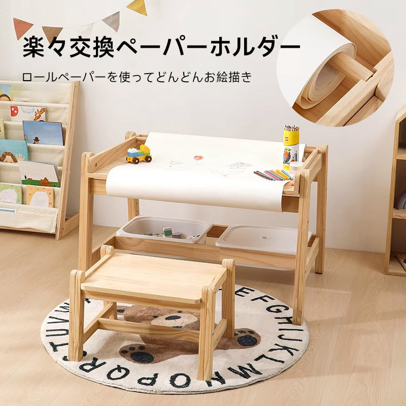 天然木昇降お絵描きテーブル&チェアは、子供の創造力を育むために設計された多機能な家具セットです。ニュージーランド産のパイン材を使用し、自然な風合いを持つナチュラルブラウンの仕上げが特徴です。高さ調整可能なテーブルとチェアは、お子様の成長に合わせて使用でき、便利な収納スペースやロールペーパーホルダーを備えています。安定した構造で、安全に使用できるこのテーブルセットは、家庭内でのクリエイティブな活動を促進します。