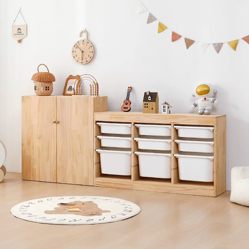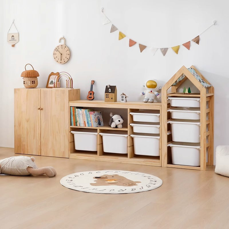 この子ども用組み合わせキャビネットは、成長するお子様にぴったりの収納ソリューションです。ニュージーランド産のパイン材を使用し、自然な美しさと安全性を兼ね備えています。多機能デザインで、プライバシー収納とオープン収納を組み合わせ、分類ごとに整理整頓が可能です。大容量で、おもちゃや本、衣類などをたっぷり収納できます。両面マグネット式ボードで創造力を育む遊び場としても活用できます。角が丸く加工されており、安全性も考慮されています。