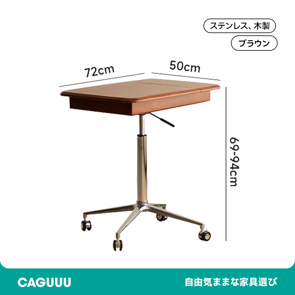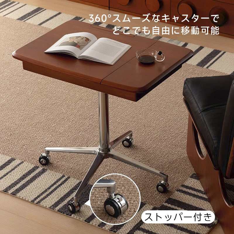 ツゲ材キャスター付きコンパクトデスクは、北米産FASグレードのツゲ材を使用し、温かみのある高品質な木材で作られています。高さ調整機能と角度調整可能な天板により、立ち作業や座り作業に柔軟に対応。キャスター付きで移動も簡単、収納スペースも備えた実用性の高いデスクです。リビングやオフィスルーム、ベッドの上でも使用可能で、あらゆる使用シーンに対応します。