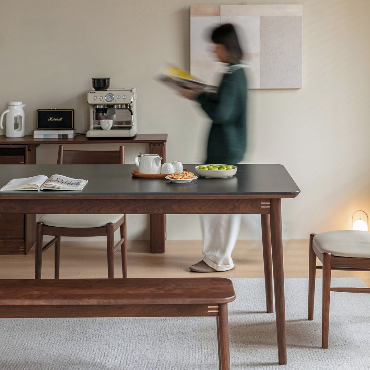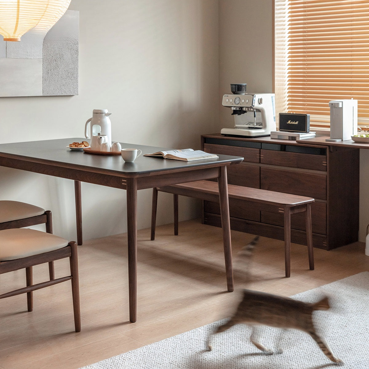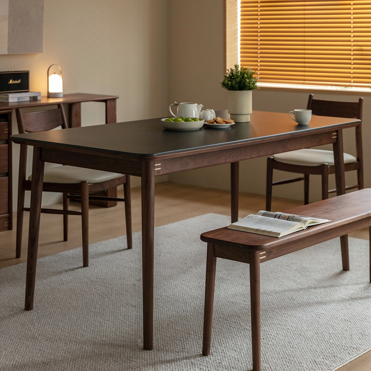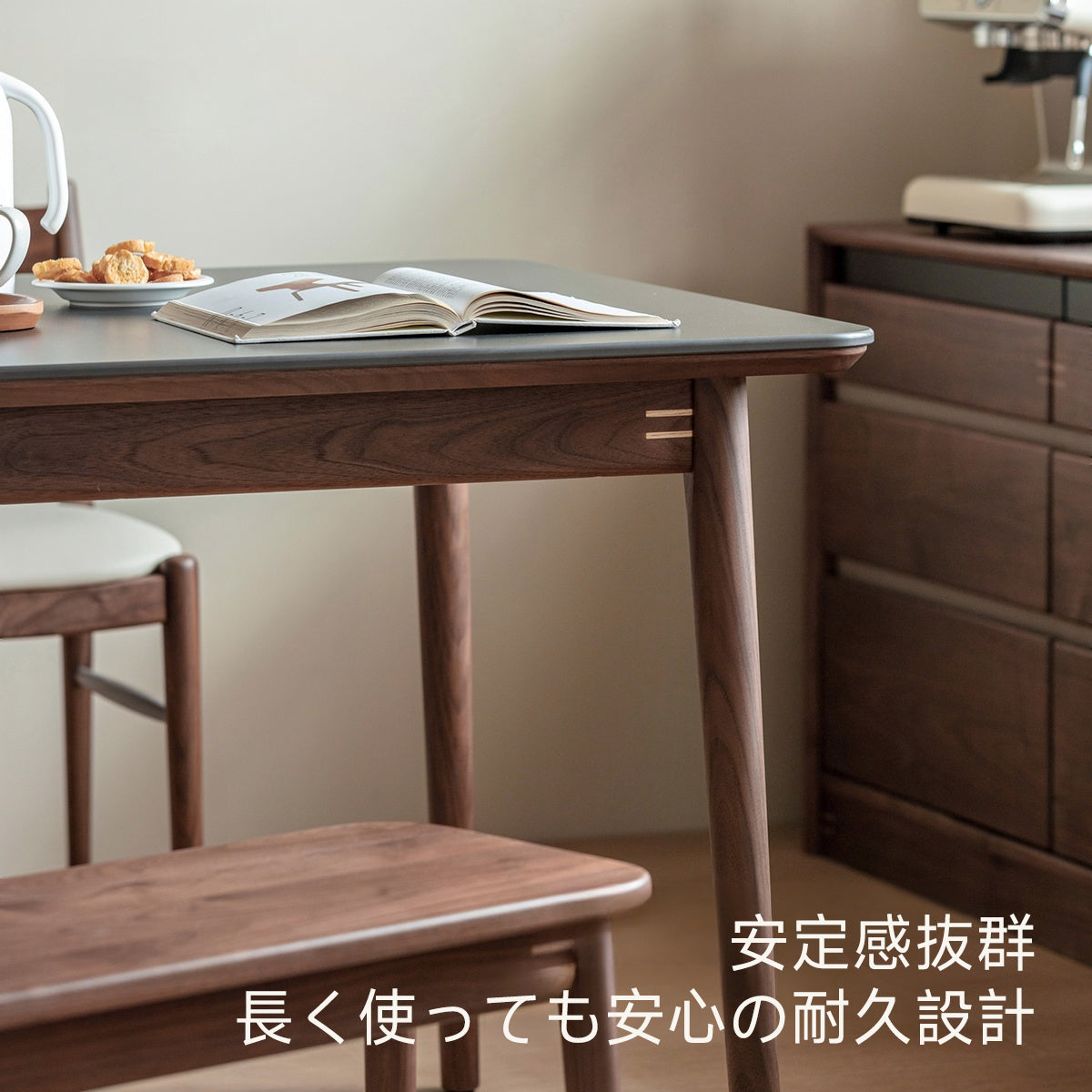 ウォールナット材 一枚セラミック天板ダイニングテーブル