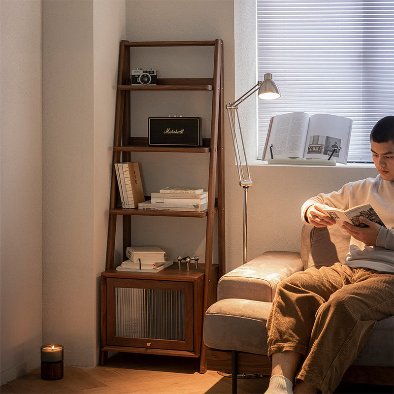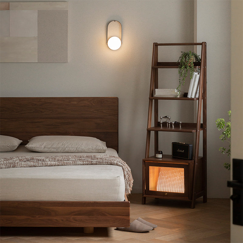 ウォールナット材の天然木収納サイドラックは、北米産FAS級ブラックウォールナットを使用した洗練されたデザインが特徴です。幅50cm、奥行き40cm、高さ150cmのコンパクトな設計で、リビングや寝室など様々な空間にマッチします。5段の収納棚は自由に調整可能で、日常の必需品をすっきりと収納。下部にはクローズドタイプの収納スペースがあり、生活用品を適切に隠すことができます。ブラックウォールナット独自の落ち着きと緻密さが、自然の息吹を家に届け、木材とガラスの質感の融合が上質な雰囲気を演出します。組み立て式で設置も簡単です。