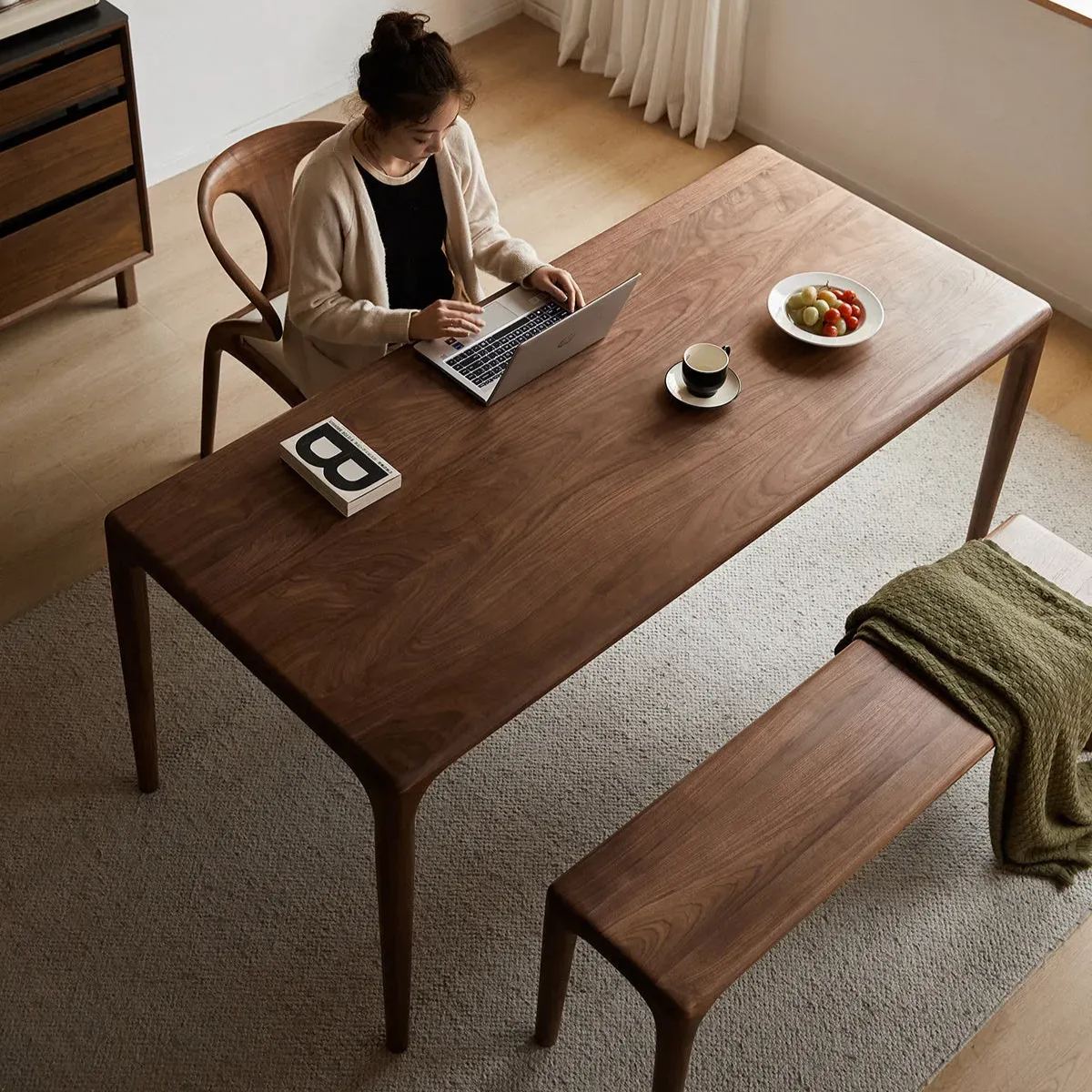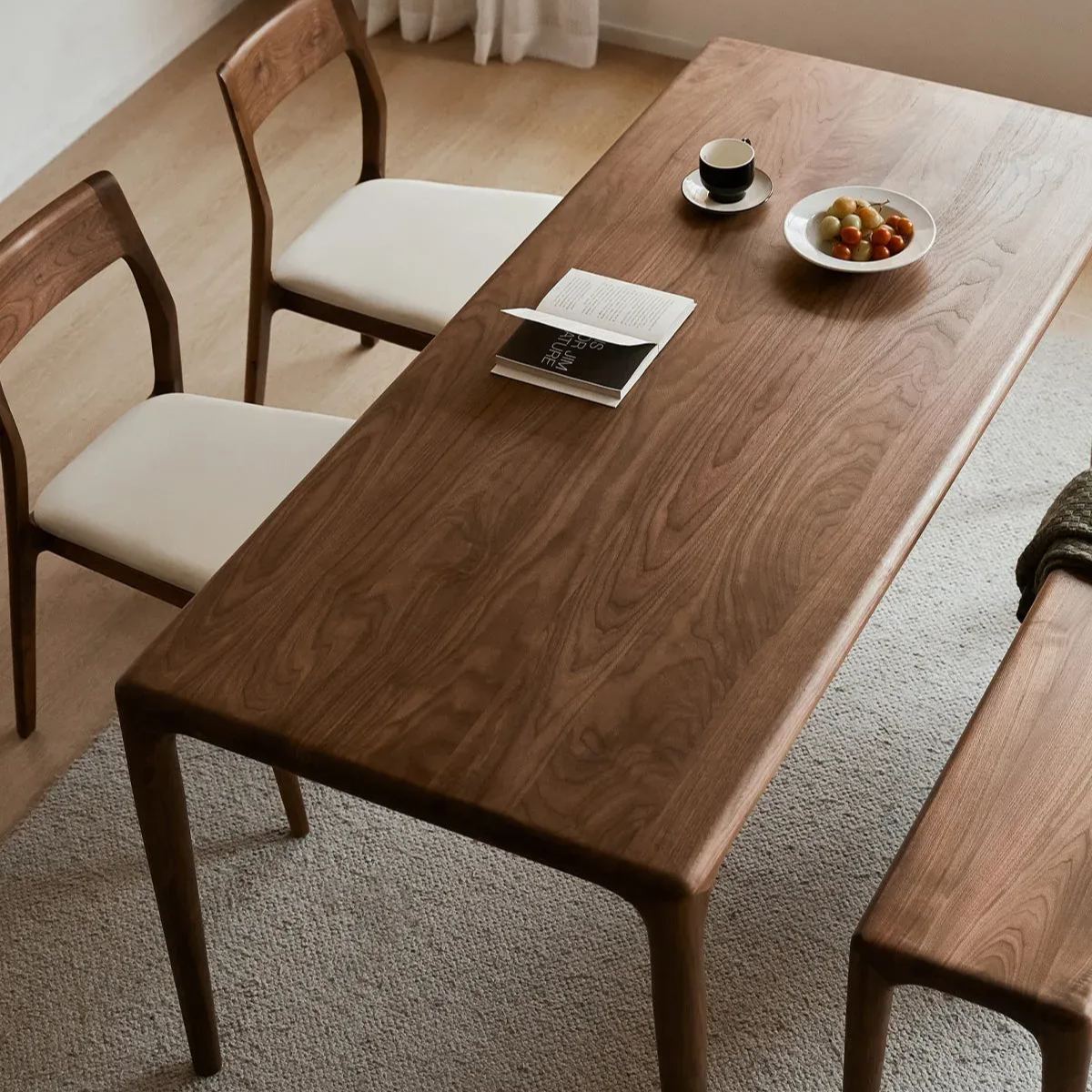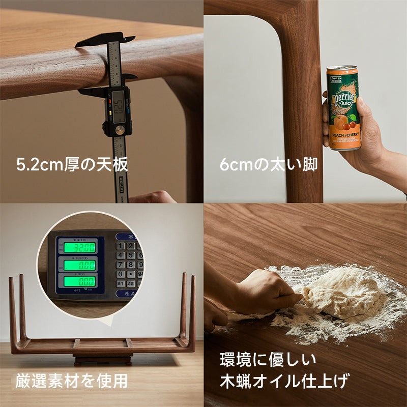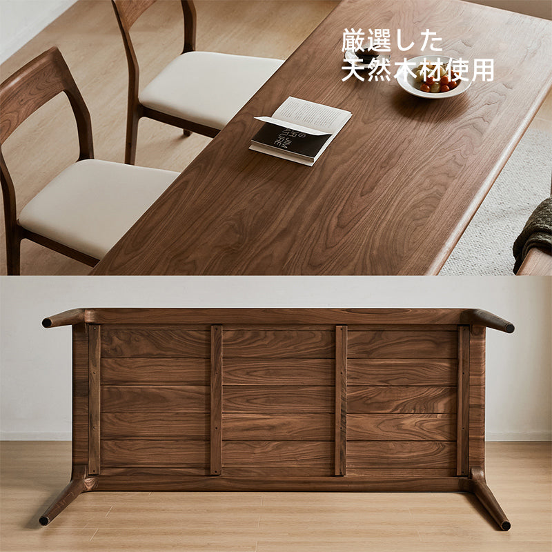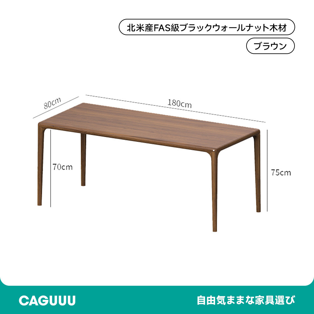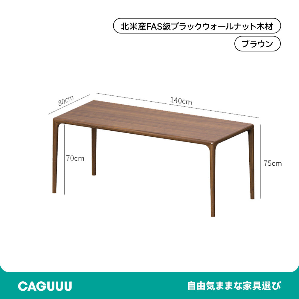 ウォールナット材ダイニングテーブルは、北米産FASグレードのブラックウォールナットを使用した高級感あふれるテーブルです。5.2cmの厚みを持つ天板と6cmの太い脚部が安定性を保証し、耐久性に優れています。木蝋オイル仕上げで環境にも配慮。ダイニングだけでなく書斎やリビングでも活躍し、簡単なお手入れが可能です。サイズは140x80x75cmから200x90x75cmまで選べ、組立不要で届いてすぐに使用できます。