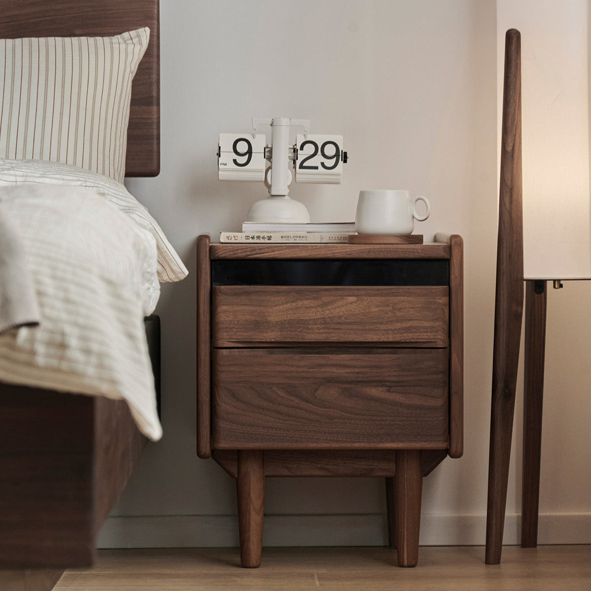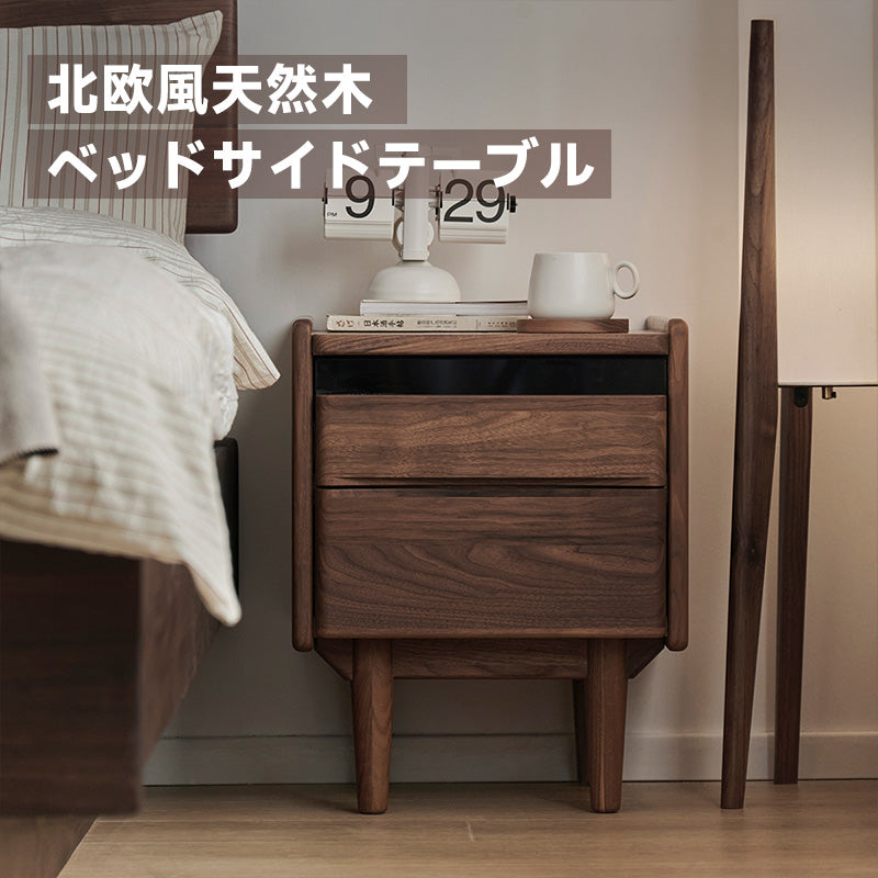 ウォールナット材 北欧風天然木ベッドサイドテーブル