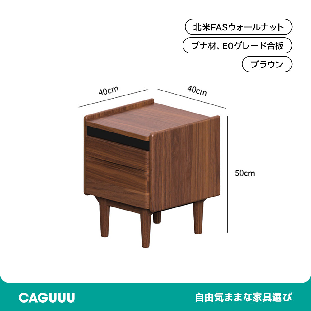 ウォールナット材の北欧風天然木ベッドサイドテーブルは、シンプルで洗練されたデザインが特徴です。高品質なブラックウォールナット材を使用し、耐久性と美しさを兼ね備えています。2段の引き出しがあり、収納力が抜群。静音で開け閉めが楽な木製スライドレールを採用し、安全性も考慮されています。簡単組み立て可能で、どんな寝室にもマッチするデザインです。