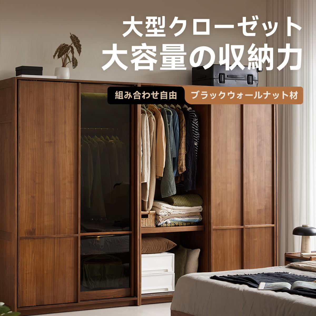 ウォールナット材 拡張式大型クローゼット