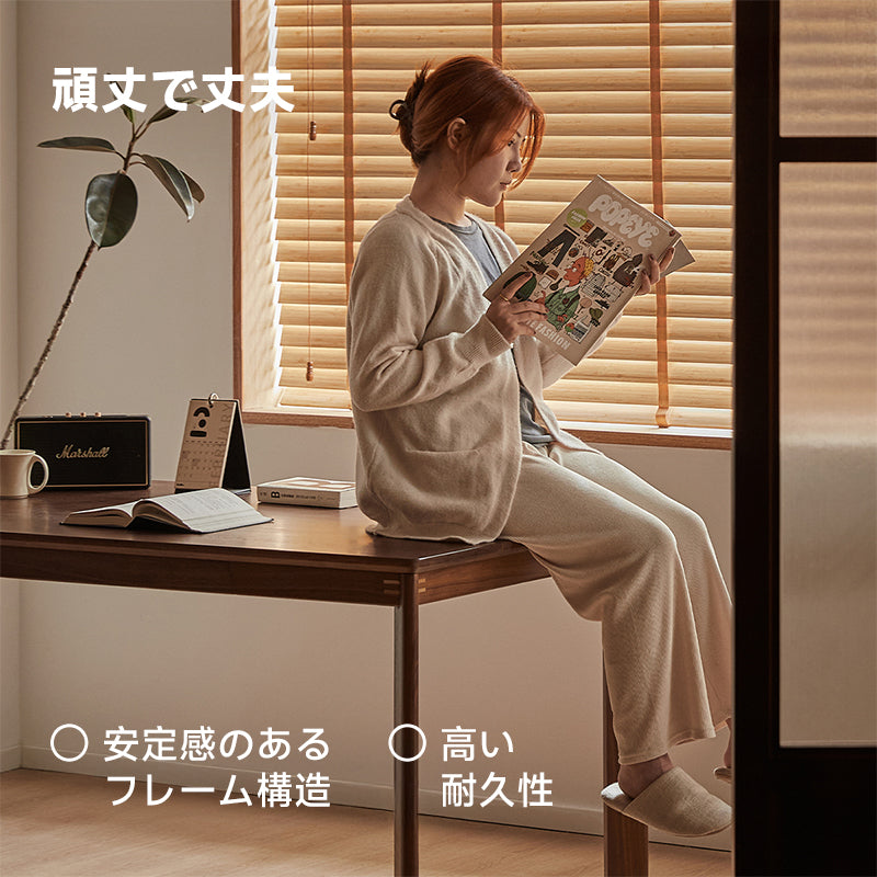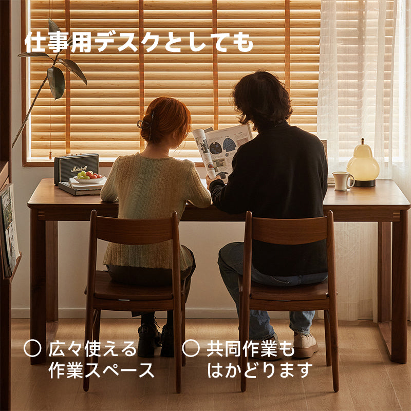 ウォールナット材 ナチュラルスタイル木製ダイニングテーブルは、北米産の高品質なFAS級ブラックウォールナット材を使用し、自然な木目の美しさが際立つデザインです。幅広の天板は80cmで、食事や作業スペースとしてもゆったりと使用できます。選べるサイズは140cmから210cmまであり、家族の人数や部屋の広さに合わせて選択可能です。環境に優しい塗装を施し、頑丈で安定感のある構造を持ち、最大800kgの耐荷重を実現。どんなインテリアにも調和しやすい多用途なデザインで、食卓や仕事用デスクとしても最適です。