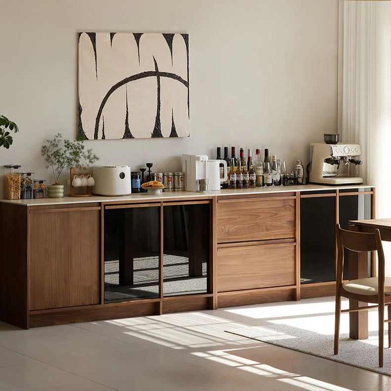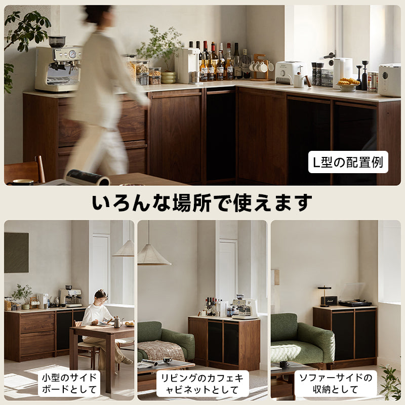 ウォールナット材を使用した高級リビングキャビネットは、北米産FASグレードの素材を採用し、美しい木目と深みのある色合いが特徴です。多様な組み合わせが可能で、リビングやダイニングに最適。耐久性に優れ、傷がつきにくく、セラミック天板は汚れにくくお手入れが簡単です。環境に優しい水溶性塗料を使用し、人体にも安全。ステンレスの通気孔付きで、実用的なデザインが魅力です。