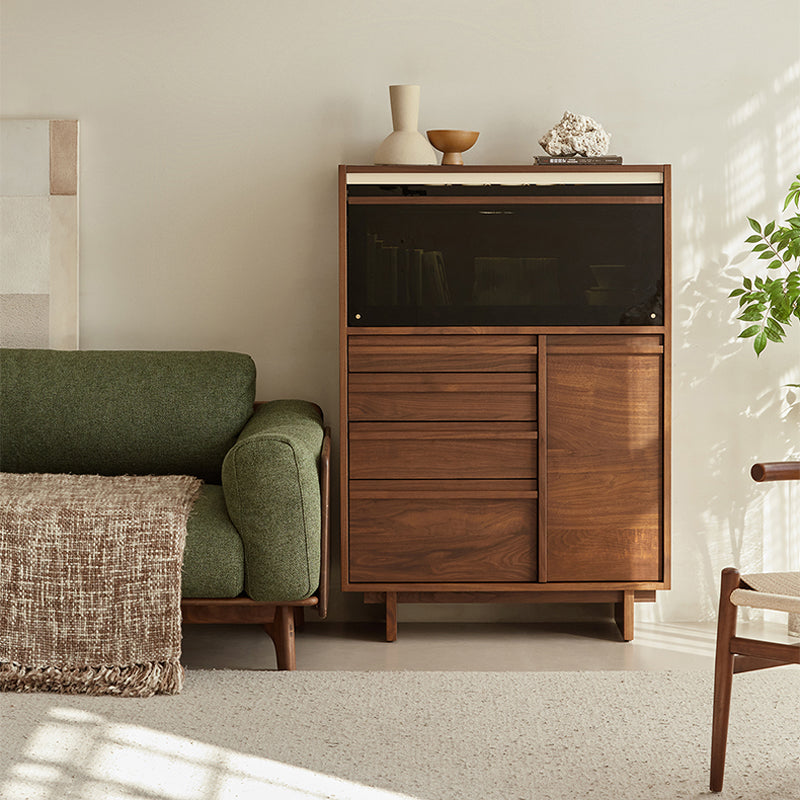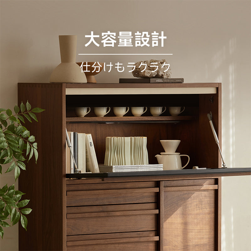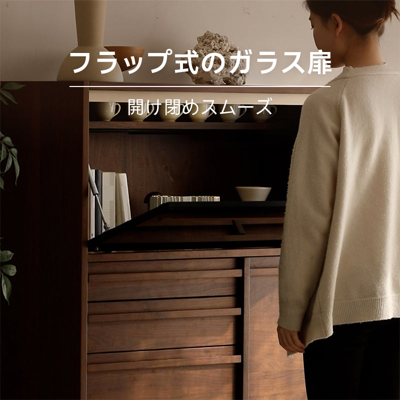 ウォールナット材 フラップ式ディスプレイキャビネットは、FASグレードの北米産ウォールナットを使用し、高級感と耐久性を兼ね備えています。美しい木目と深みのある色合いが特徴で、どんなインテリアにも調和します。フラップ式ガラス扉と大容量設計により、収納物をしっかりと保護し、整理整頓が可能です。頑丈な構造とシンプルで洗練されたデザインが、リビングやダイニング、オフィスなど様々な場所に適しています。環境に優しいFSC認証とAHEC認証を取得した木材を使用し、環境にも配慮しています。