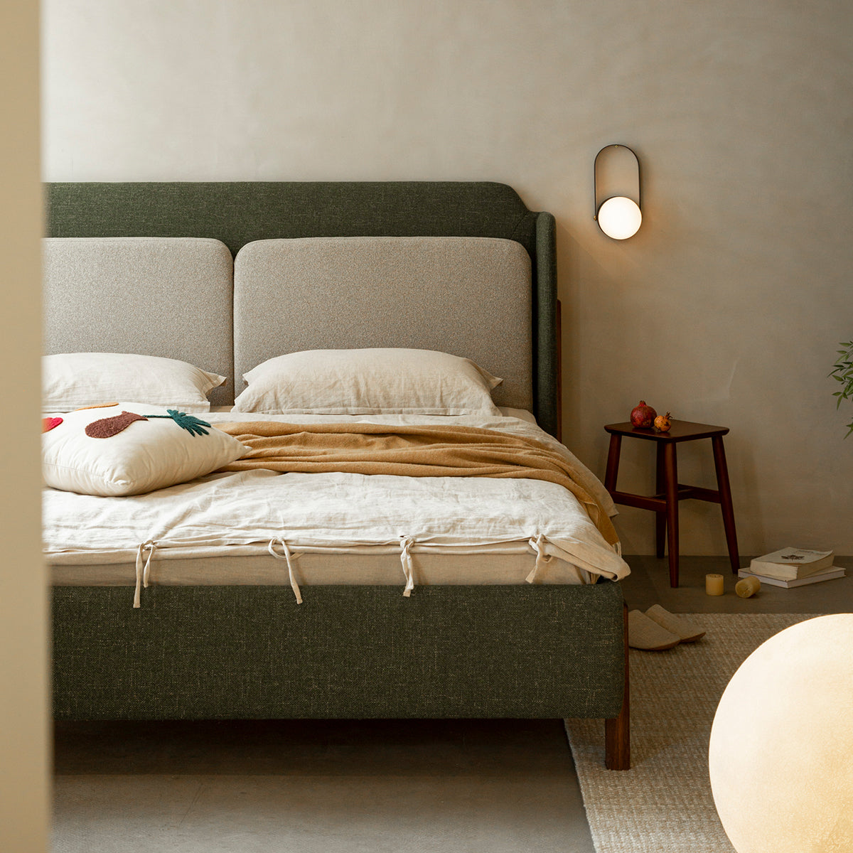 ウォールナット材 天然木リネンベッド