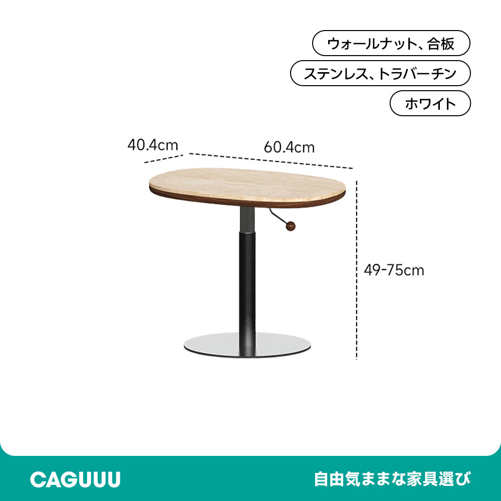 ウォールナット材コーナーテーブルは、北米産FASグレードのブラックウォールナットを使用した高級感あふれるデザインが特徴です。セラミック天板は美しさと高い実用性を兼ね備え、耐熱性や傷に強い特性を持っています。高さ調整機能や360度回転機能を備え、様々なシーンに対応可能です。耐荷重約16kgで安心して使用でき、ステンレス製ベースと高品質ガススプリングにより安定感があります。リビングやバルコニーなどどこでも簡単に移動可能な省スペースデザインで、どんな部屋にもフィットします。