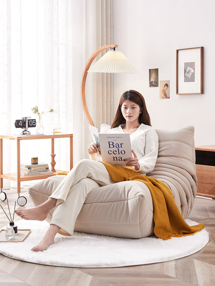 高反発ウレタンプリーツシングルソファは、快適さとスタイルを兼ね備えたデザインが特徴です。高密度の高反発ウレタンと真綿を使用し、長時間座ってもへたりにくい構造です。ドラロン綿とシリコーンレザーを表面に採用し、柔らかく肌触りが良いです。防水・防傷加工が施されており、お手入れが簡単です。6層のプリーツデザインがナチュラルで洗練された印象を与え、S字型のカーブが体の曲線にフィットします。サイズは102cm x 110cm x 72cmで、座面の高さは36cmです。リビングルームや寝室に最適で、シンプルながらもエレガントな雰囲気を演出します。