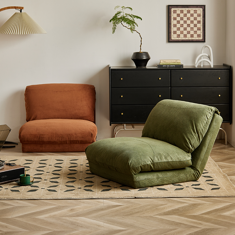 コーデュロイ折り畳み式ソファベッドは、多機能でスタイリッシュなデザインが特徴です。コンパクトでありながら、リビングや書斎、寝室、子供部屋など、どんな場所にもフィットします。ソファ、カウチ、ベッドとして使用可能で、コーデュロイ生地の肌触りと通気性が魅力。高品質なポリエステル綿と高密度ウレタンが快適な座り心地を提供し、鉄製フレームで安定感も抜群。カバーは取り外し可能で丸洗いOK、汚れがついても安心です。テラコッタ、オリーブグリーン、ホワイトベージュの3色展開で、どんなインテリアにもマッチします。