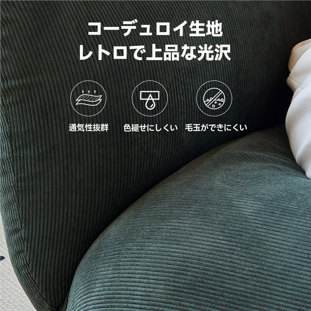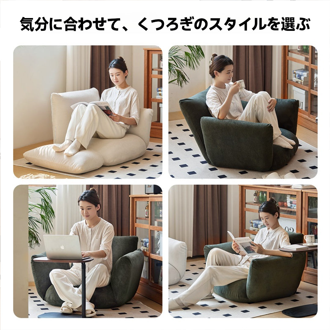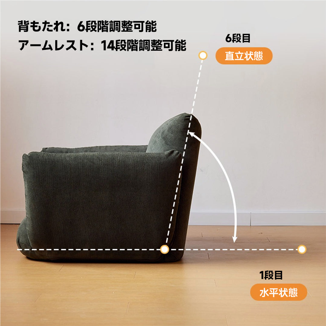 リクライニングクッションソファは、快適なリラックスタイムを提供するためにデザインされています。背もたれは6段階、アームレストは14段階で調整可能で、様々な姿勢に合わせて最適な角度に調整できます。高品質なコーデュロイ生地を使用し、通気性が良く、色褪せしにくく、毛玉ができにくいのが特徴です。幅90cm、奥行63cm、高さ78cmのコンパクトサイズで、ホワイトとグリーンの2色展開。スチールフレームで安定性と耐久性を確保し、カバーは取り外し可能で洗濯も簡単です。どんなシーンにもぴったりで、移動も簡単なこのソファで新しいリラックス体験を。