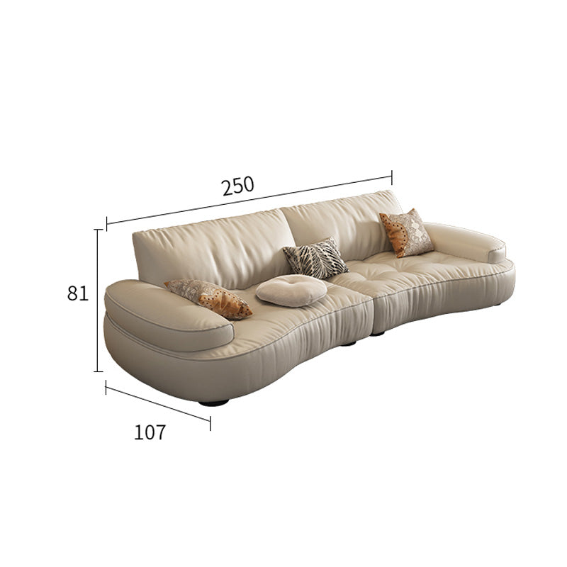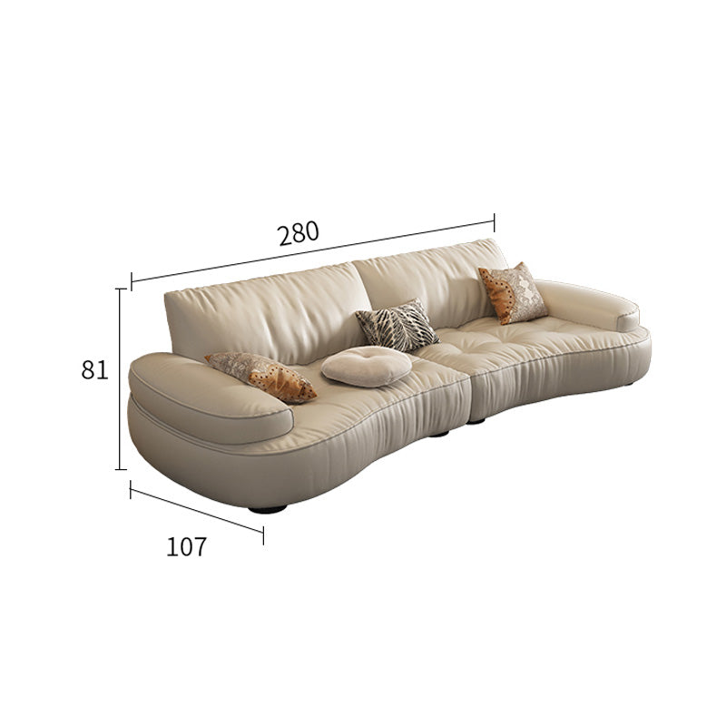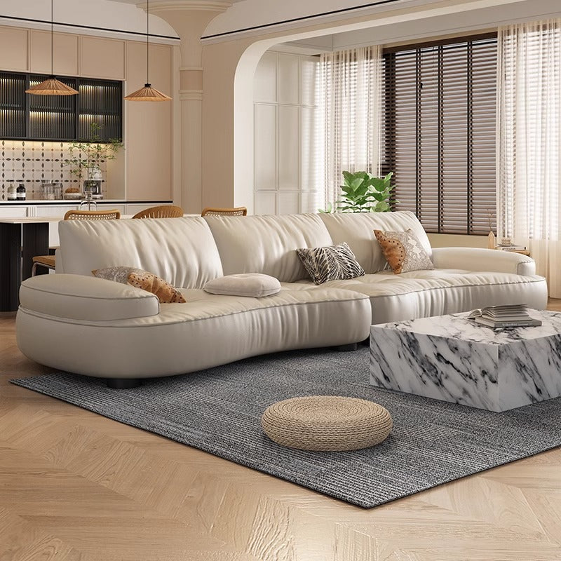 モダンフロアソファは、洗練されたデザインと快適さを兼ね備えたクリームカラーのソファです。高品質なA級レザーと天然牛革を使用し、滑らかな手触りと優れた通気性を提供します。高反発ウレタンフォームと羽毛70%・シルク綿30%の座面で、長時間座っても疲れにくい快適な座り心地を実現。ロシア産パイン材の頑丈なフレームにより、耐久性と安定感が抜群です。幅220cmから340cmまでのサイズバリエーションがあり、どんな空間にもフィットします。リラックスできる座面の高さ41cmで、日常の癒しの時間を提供します。上品な雰囲気をプラスし、快適な暮らしを支える理想的な選択肢です。