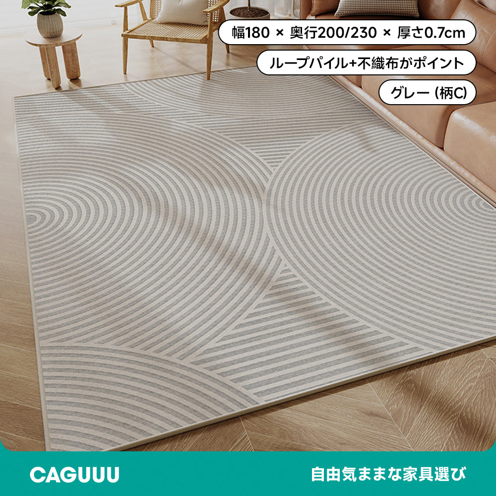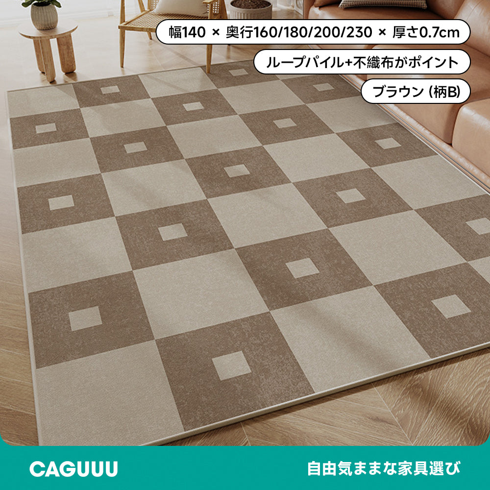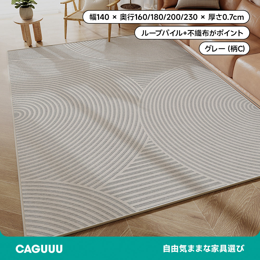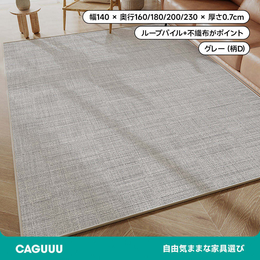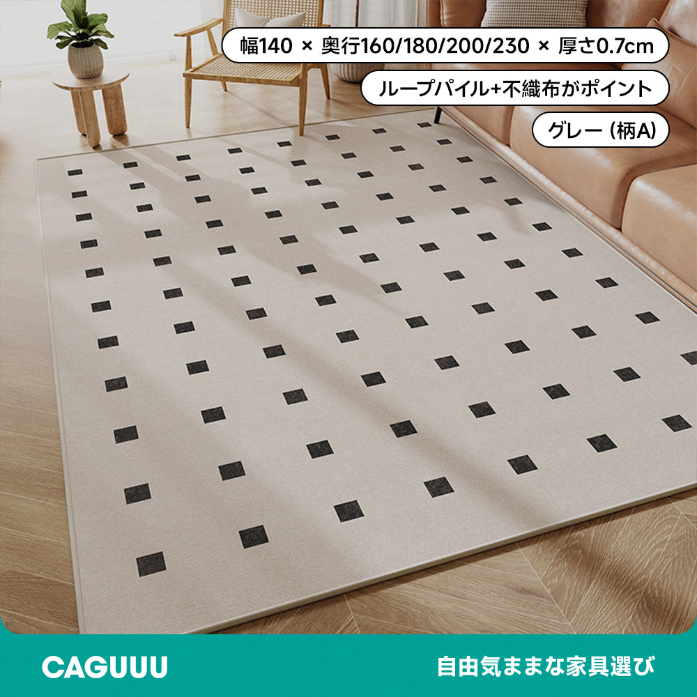 和モダンスクエアカーペットは、シンプルでエレガントなデザインが特徴の高密度ループパイルカーペットです。耐久性が高く、色褪せにくい仕上がりで、柔らかな感触が素足でも快適な使用感を提供します。和モダンスタイルのデザインは、どんなインテリアにも調和し、部屋に彩りと安らぎをもたらします。滑り止め加工が施されており、安全性も考慮されています。掃除機で簡単に清掃できるため、メンテナンスも簡単です。幅140×奥行160/180/200/230×厚さ0.7cmのサイズ展開で、グレーとブラウンのカラーオプションがあります。