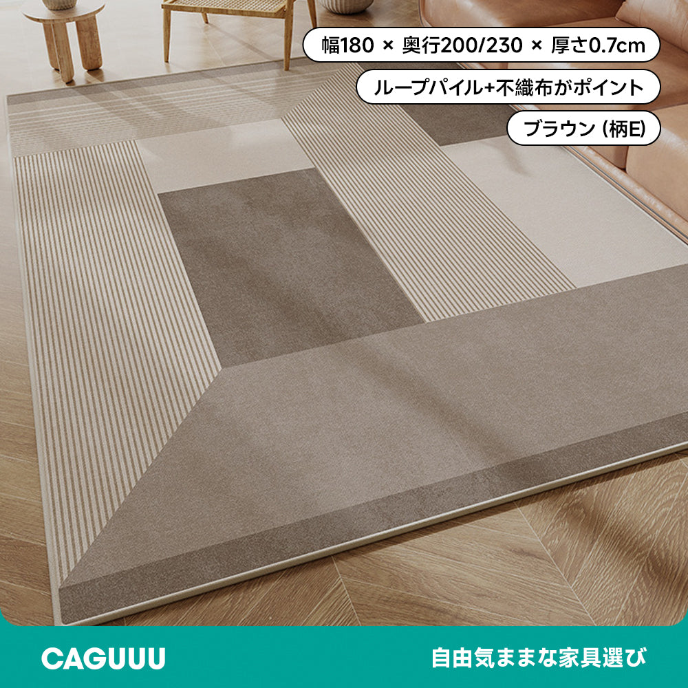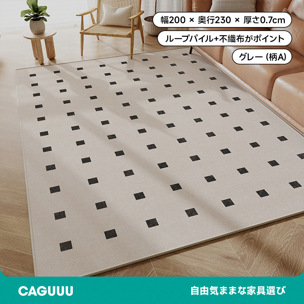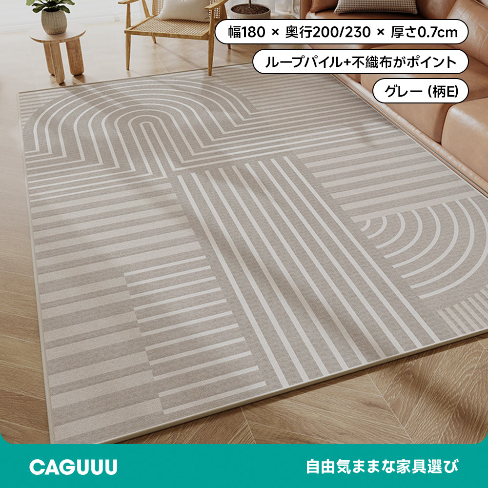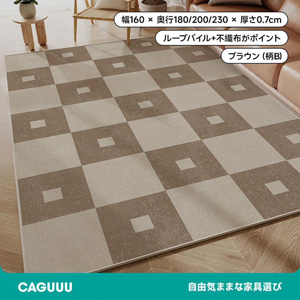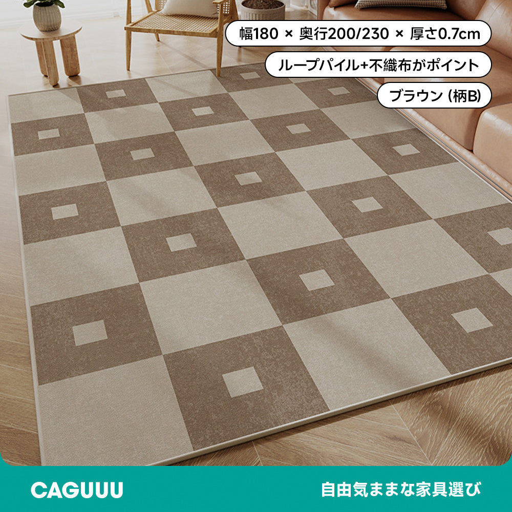 和モダンスクエアカーペットは、シンプルでエレガントなデザインが特徴の高密度ループパイルカーペットです。耐久性が高く、色褪せにくい仕上がりで、柔らかな感触が素足でも快適な使用感を提供します。和モダンスタイルのデザインは、どんなインテリアにも調和し、部屋に彩りと安らぎをもたらします。滑り止め加工が施されており、安全性も考慮されています。掃除機で簡単に清掃できるため、メンテナンスも簡単です。幅140×奥行160/180/200/230×厚さ0.7cmのサイズ展開で、グレーとブラウンのカラーオプションがあります。