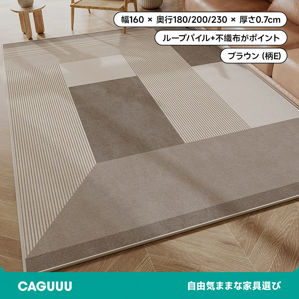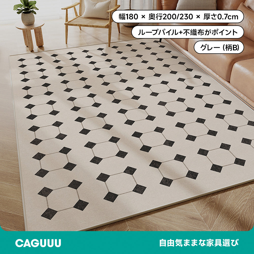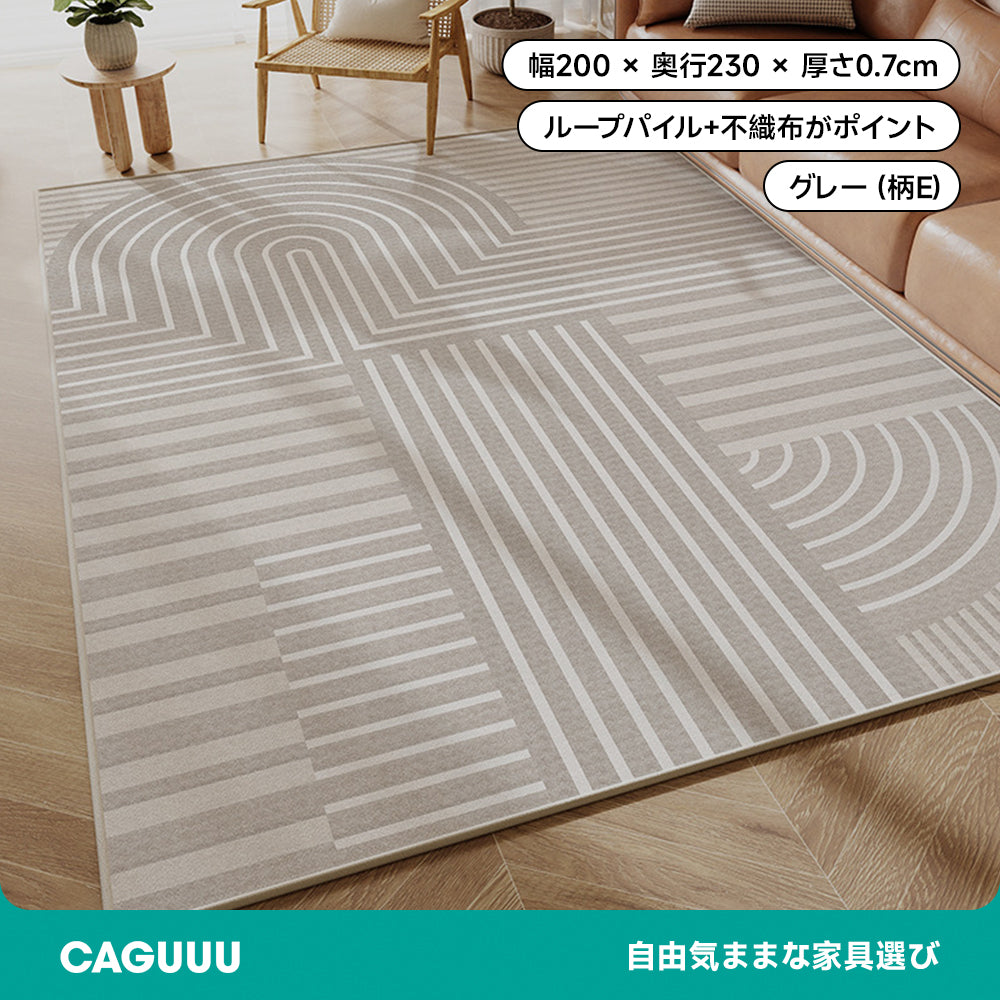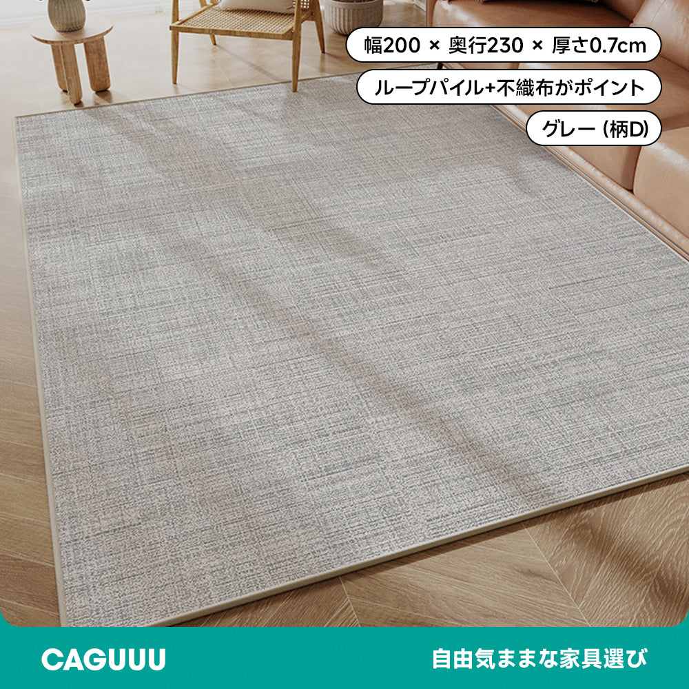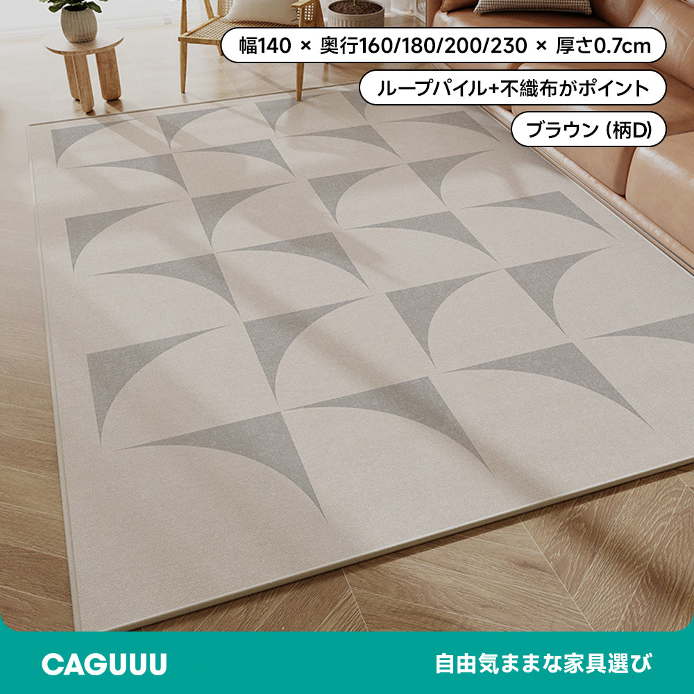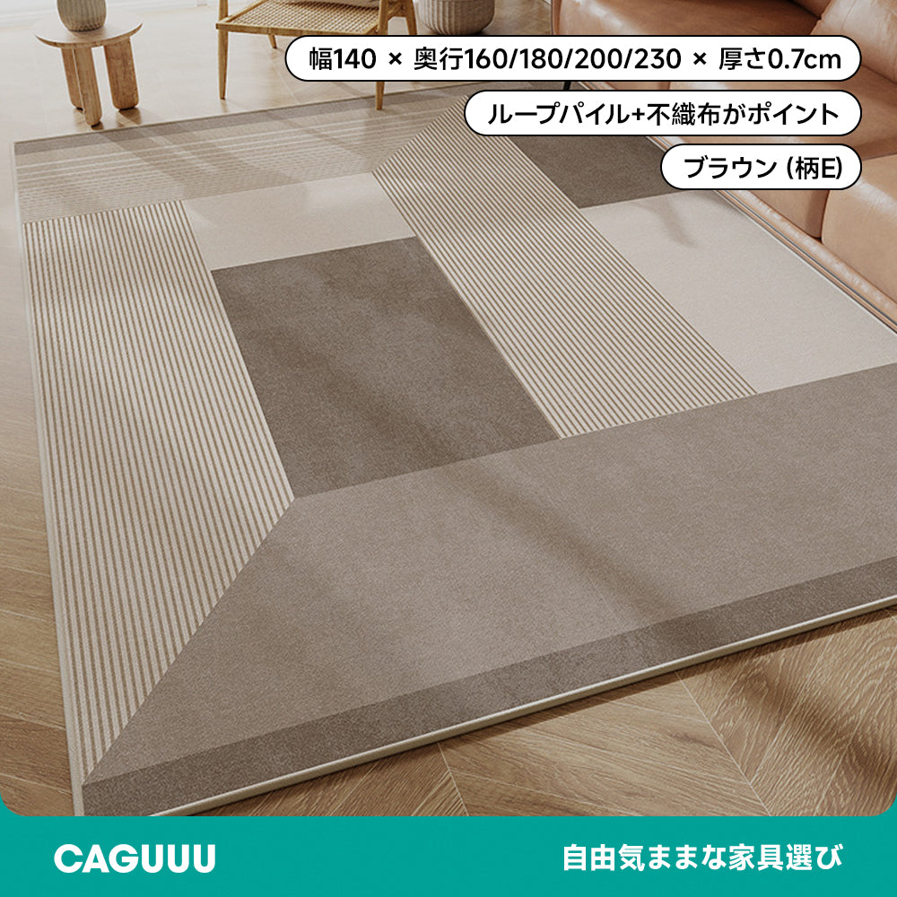 和モダンスクエアカーペットは、シンプルでエレガントなデザインが特徴の高密度ループパイルカーペットです。耐久性が高く、色褪せにくい仕上がりで、柔らかな感触が素足でも快適な使用感を提供します。和モダンスタイルのデザインは、どんなインテリアにも調和し、部屋に彩りと安らぎをもたらします。滑り止め加工が施されており、安全性も考慮されています。掃除機で簡単に清掃できるため、メンテナンスも簡単です。幅140×奥行160/180/200/230×厚さ0.7cmのサイズ展開で、グレーとブラウンのカラーオプションがあります。