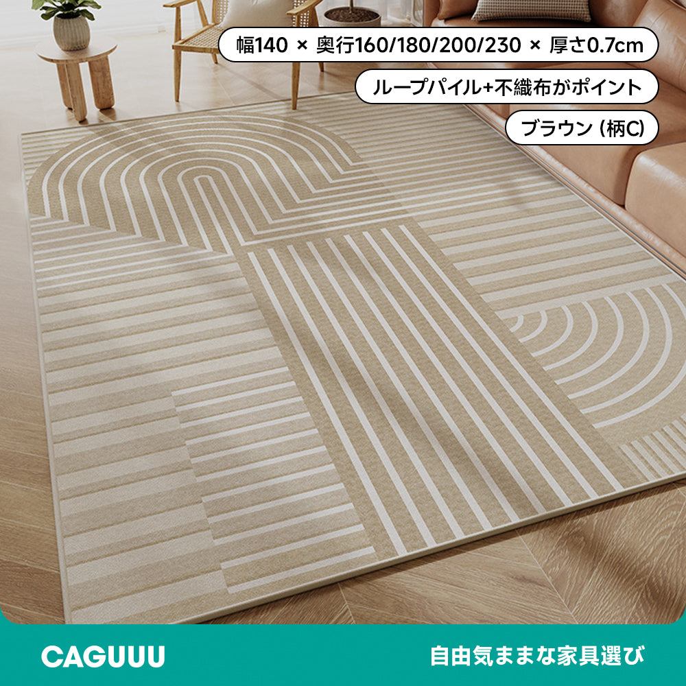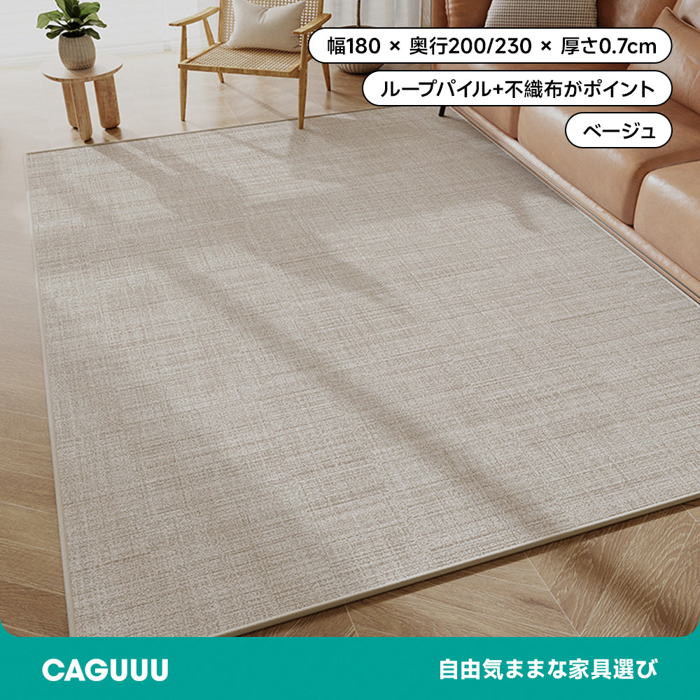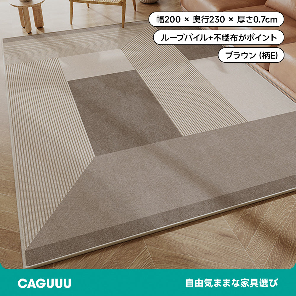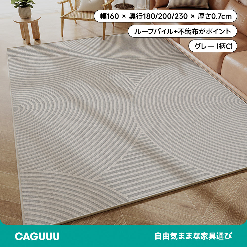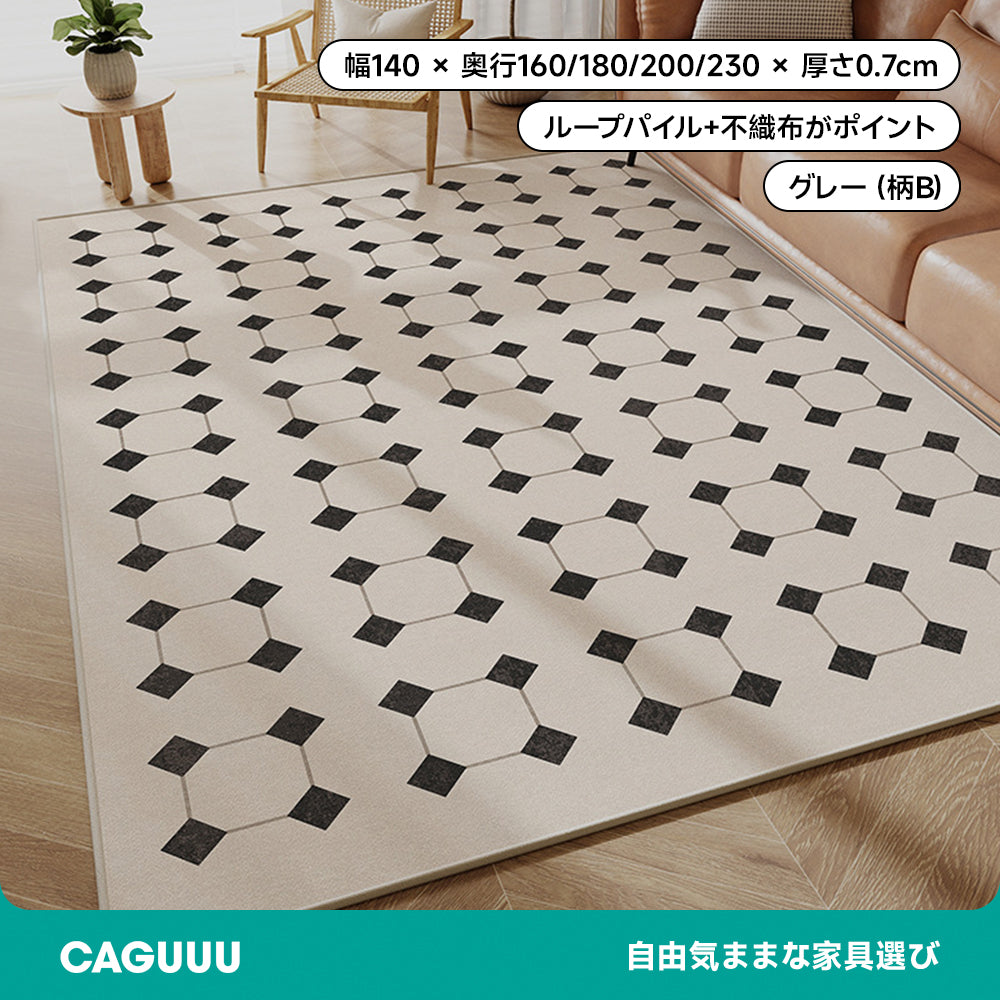和モダンスクエアカーペットは、シンプルでエレガントなデザインが特徴の高密度ループパイルカーペットです。耐久性が高く、色褪せにくい仕上がりで、柔らかな感触が素足でも快適な使用感を提供します。和モダンスタイルのデザインは、どんなインテリアにも調和し、部屋に彩りと安らぎをもたらします。滑り止め加工が施されており、安全性も考慮されています。掃除機で簡単に清掃できるため、メンテナンスも簡単です。幅140×奥行160/180/200/230×厚さ0.7cmのサイズ展開で、グレーとブラウンのカラーオプションがあります。