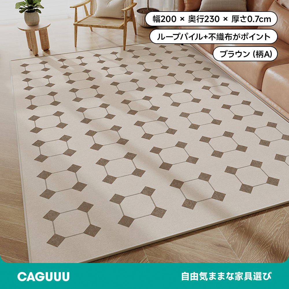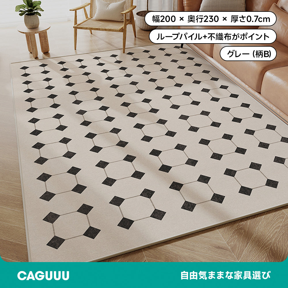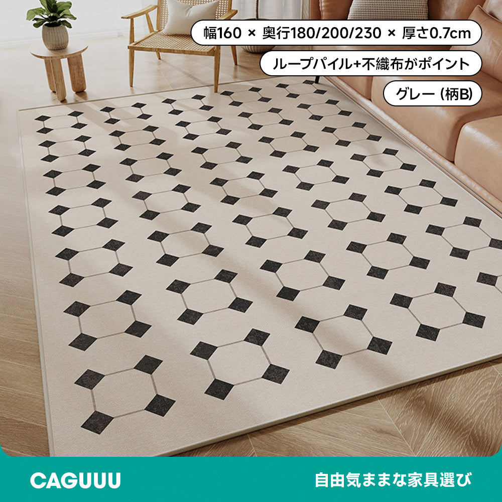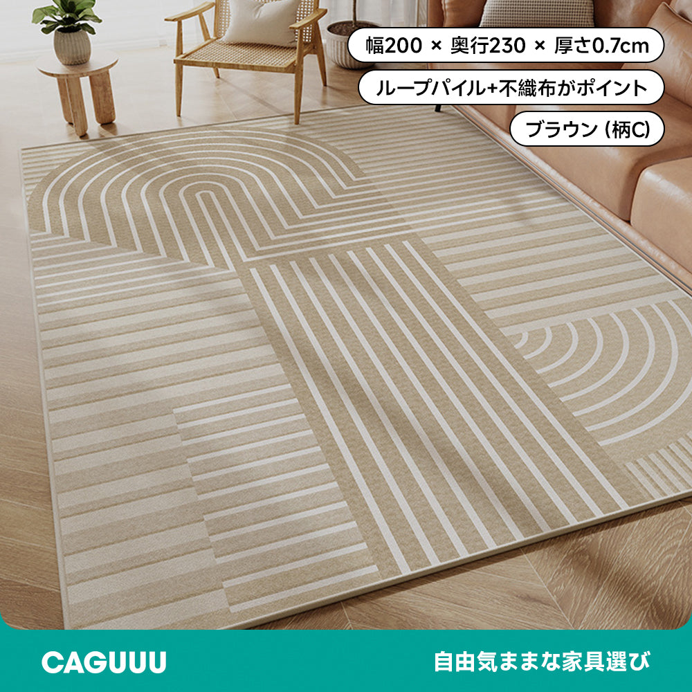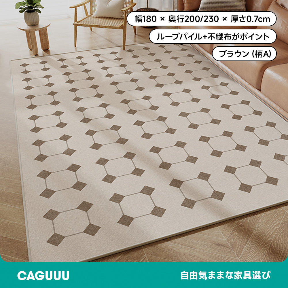 和モダンスクエアカーペットは、シンプルでエレガントなデザインが特徴の高密度ループパイルカーペットです。耐久性が高く、色褪せにくい仕上がりで、柔らかな感触が素足でも快適な使用感を提供します。和モダンスタイルのデザインは、どんなインテリアにも調和し、部屋に彩りと安らぎをもたらします。滑り止め加工が施されており、安全性も考慮されています。掃除機で簡単に清掃できるため、メンテナンスも簡単です。幅140×奥行160/180/200/230×厚さ0.7cmのサイズ展開で、グレーとブラウンのカラーオプションがあります。