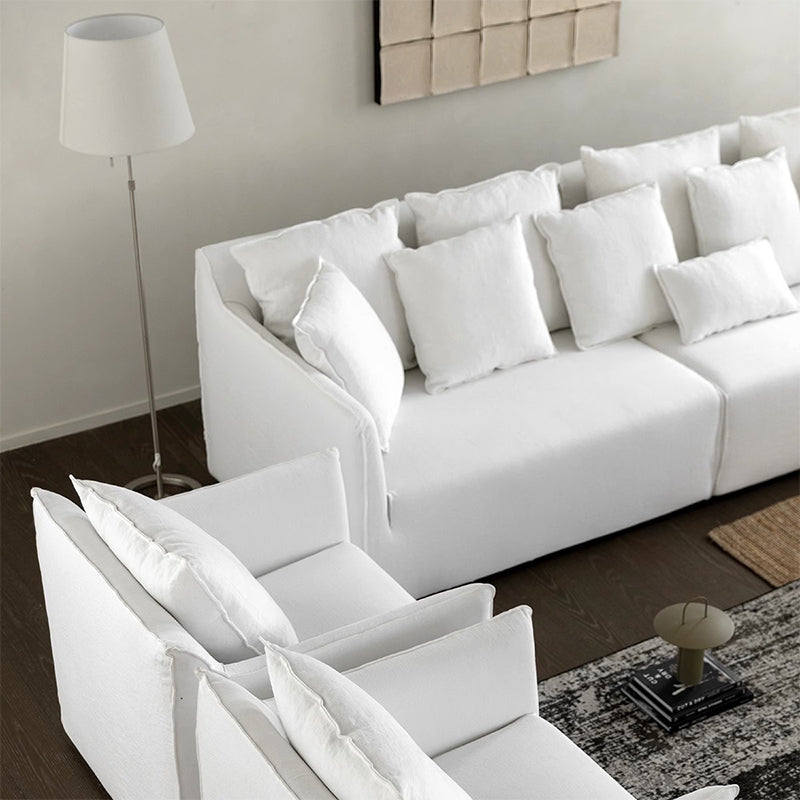 ふんわりフェザーソファは、快適さとスタイルを兼ね備えた理想的な家具です。高反発ウレタンと上質なグースダウンを使用し、包み込まれるような座り心地を実現します。カバーは100%リネンまたはポルトガル製の洗いざらしコットンを使用し、耐久性と弾力性を両立。シンプルで洗練されたデザインはどんなインテリアにもマッチし、カバーは取り外して洗えるため清潔に保つことが可能です。サイズバリエーションも豊富で、空間に合わせて選べます。