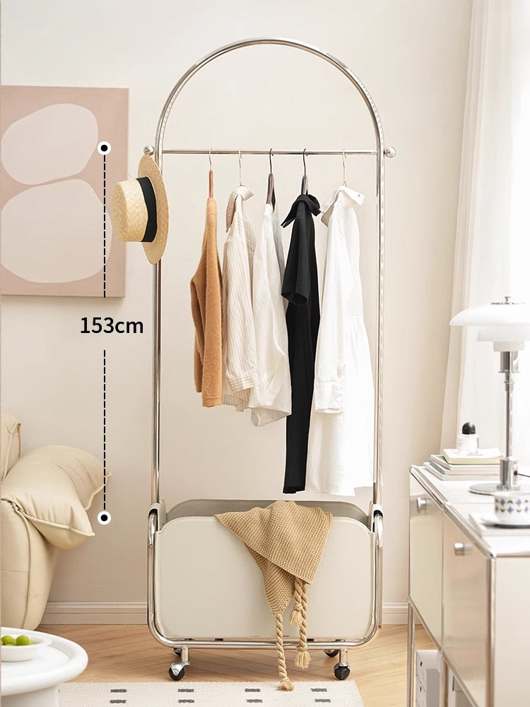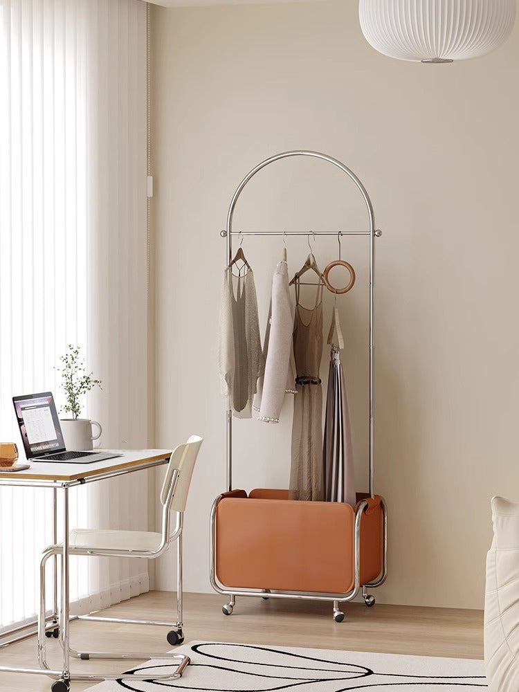 レザー調ハンガーラックは、スタイリッシュで機能的なデザインが特徴です。パステルホワイトのレザーと金属フレームの組み合わせが、どんなインテリアにもマッチします。多機能収納で衣類や小物をすっきりと整理でき、耐久性のある素材は防水・防汚性に優れています。360°回転キャスター付きで移動が簡単、コンパクトなサイズで一人暮らしやカップル、ファミリー向けに最適です。リビングやダイニングなど様々な場所で活躍します。