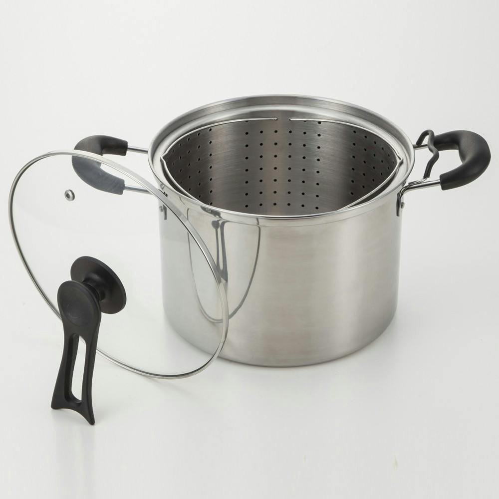 蓋が立てられるステンレス製パスタ鍋 23cm