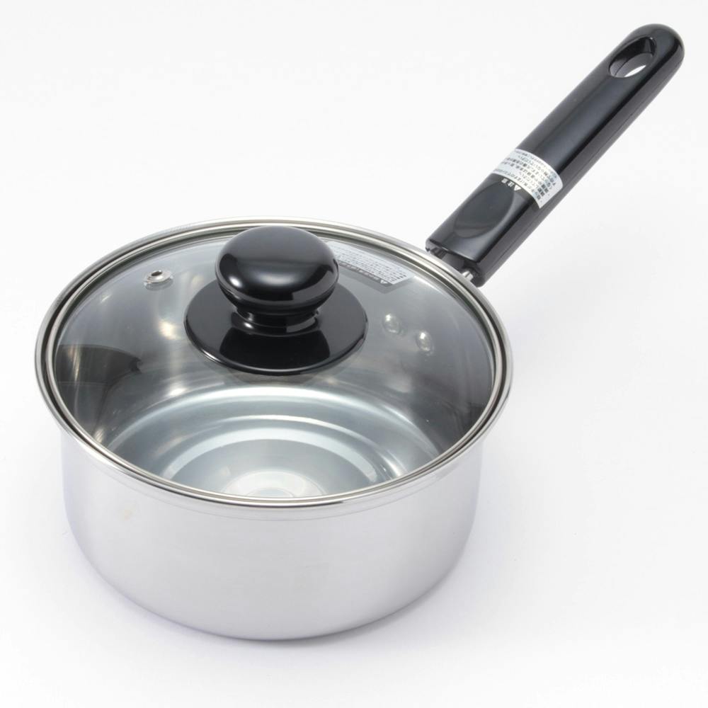 IH・ガス ステンレス製 ガラス蓋付片手鍋 14cm