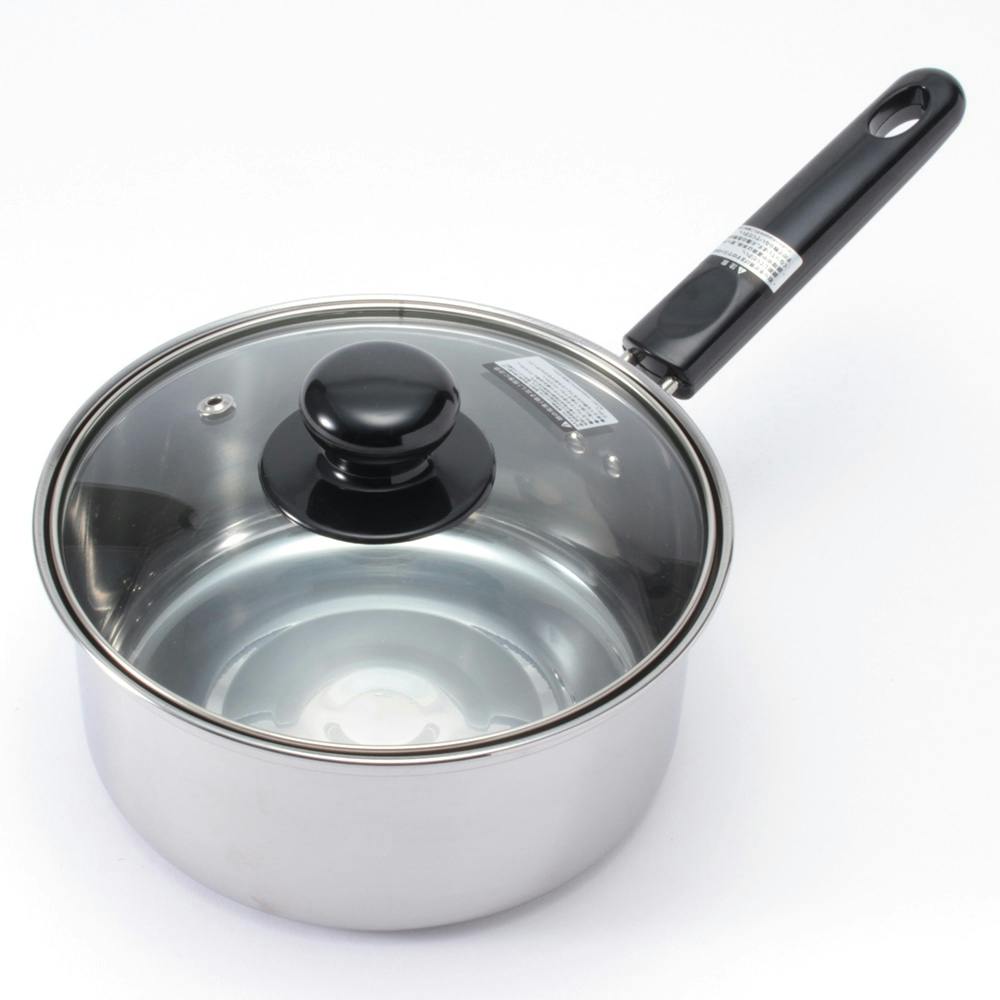IH・ガス ステンレス製 ガラス蓋付片手鍋 16cm