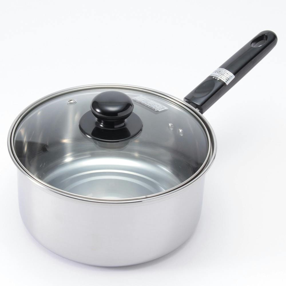 IH・ガス ステンレス製 ガラス蓋付片手鍋 18cm