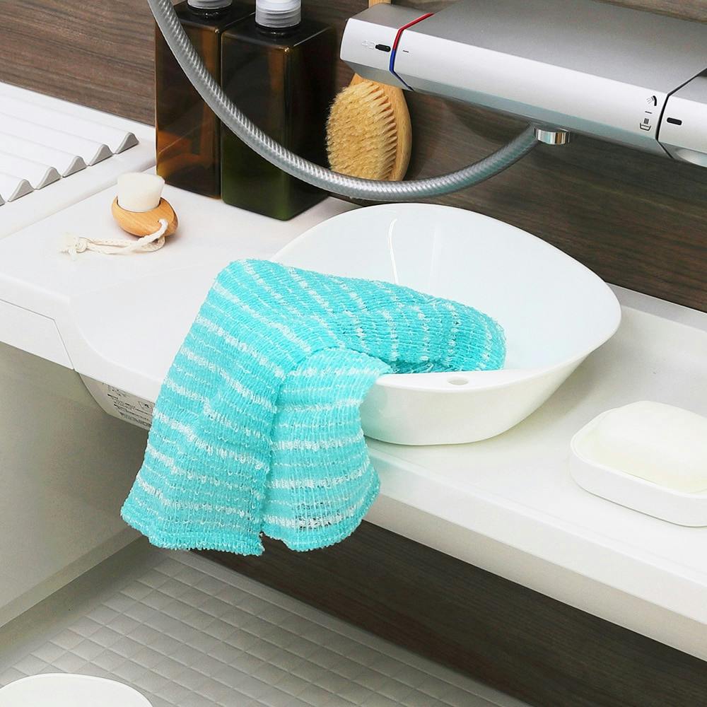 泡立ナイロンボディタオル かため ロング ターコイズブルー