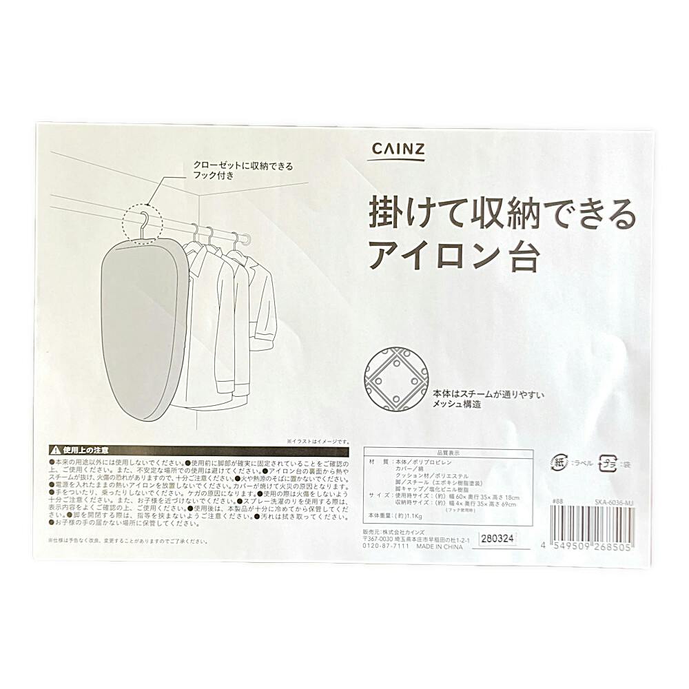 掛けて収納できるアイロン台 無地